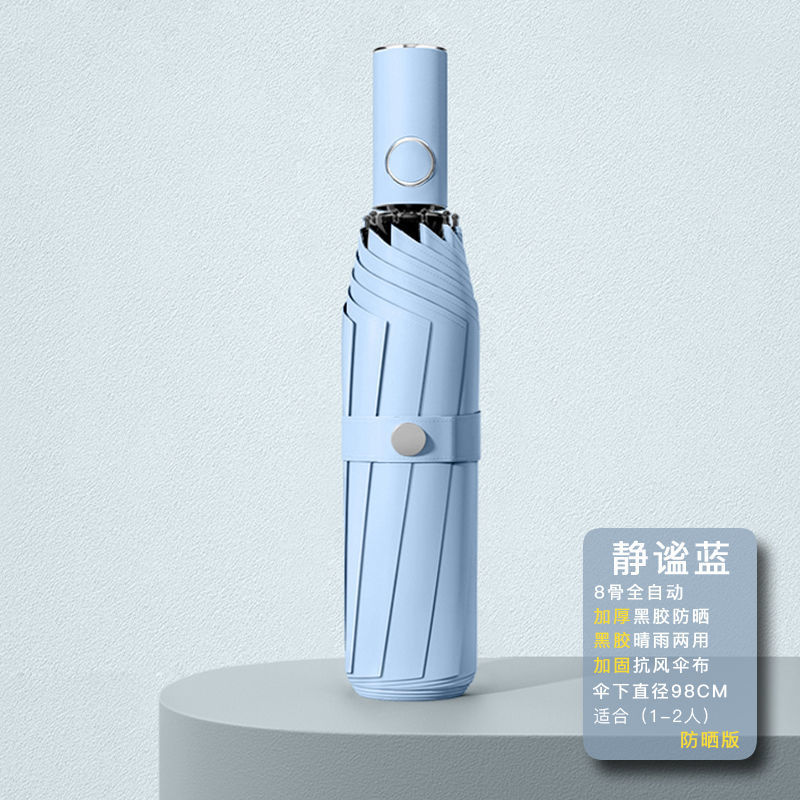 • [업그레이드 자동] 8 본 블랙 고무 우산 조용한 파란색