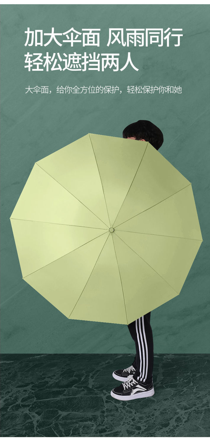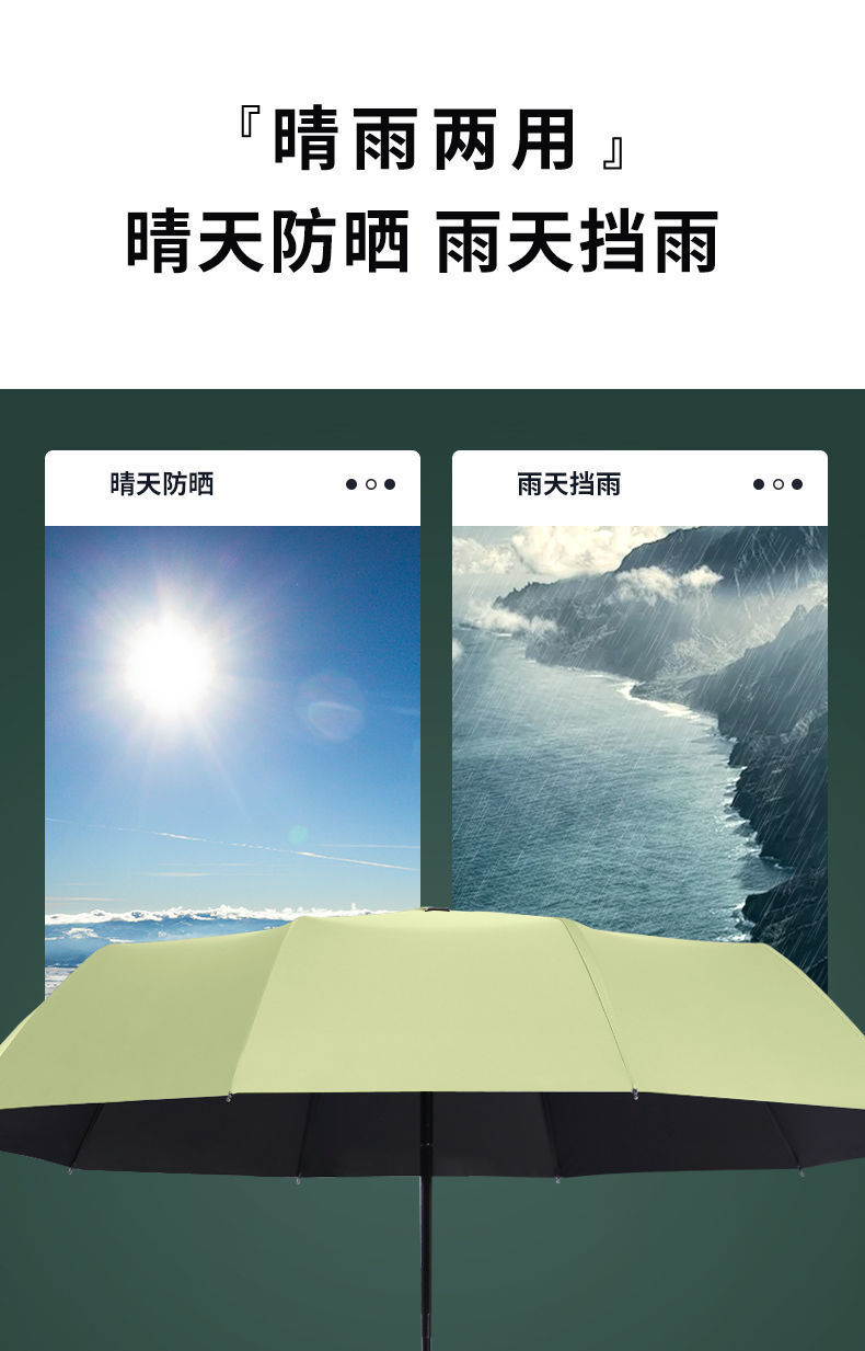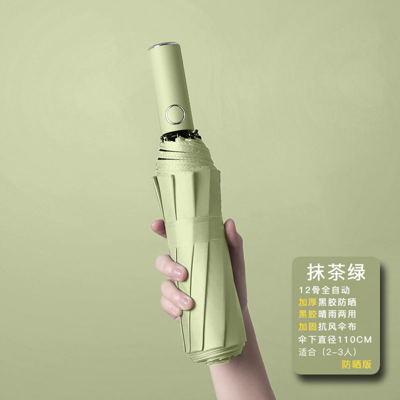 • [자동 업그레이드] 12 본 블랙 접착제 써니 우산 말차 그린