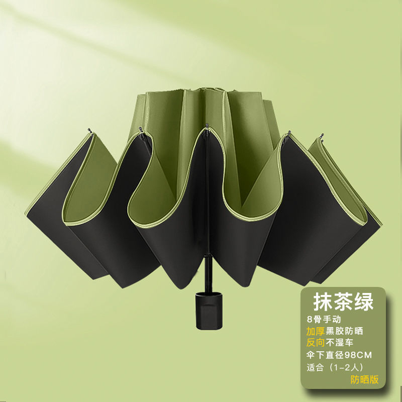 • [자동] 8 본 검정 고무 우산 말차 그린