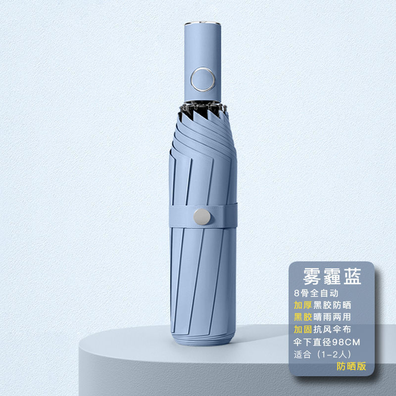 • [업그레이드 자동] 8 본 블랙 접착제 우산 헤이즈 블루