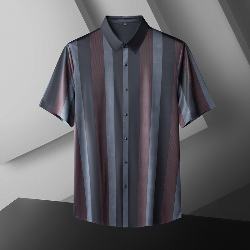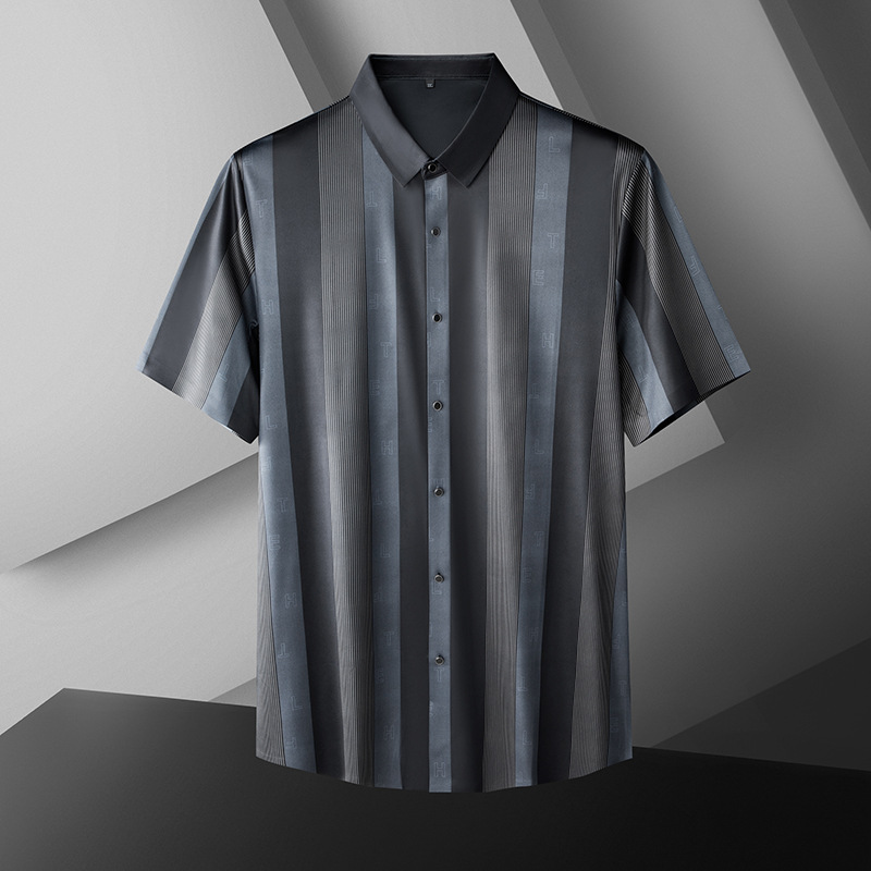 뚱뚱한 형제 2022 여름 새로운 남자의 젊음 플러스 뚱뚱한 플러스 사이즈 사각 목 원활한 스트레치 줄무늬 반팔 셔츠스토어 가기