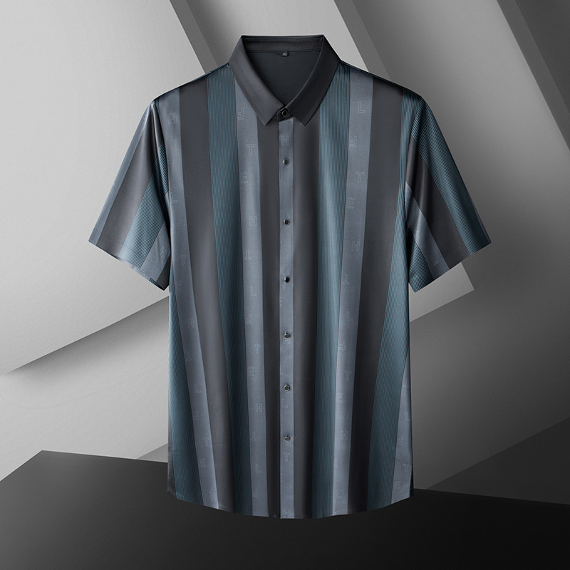 뚱뚱한 형제 2022 여름 새로운 남자의 젊음 플러스 뚱뚱한 플러스 사이즈 사각 목 원활한 스트레치 줄무늬 반팔 셔츠
