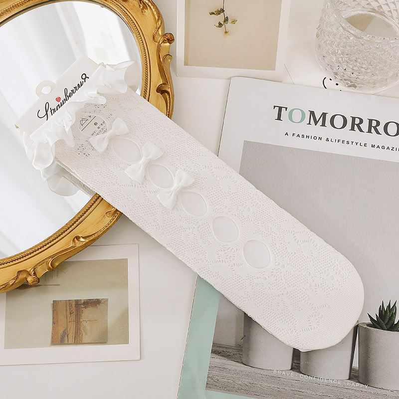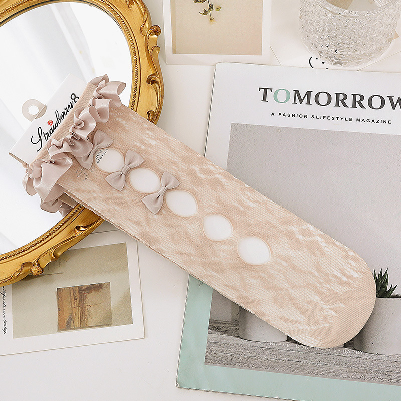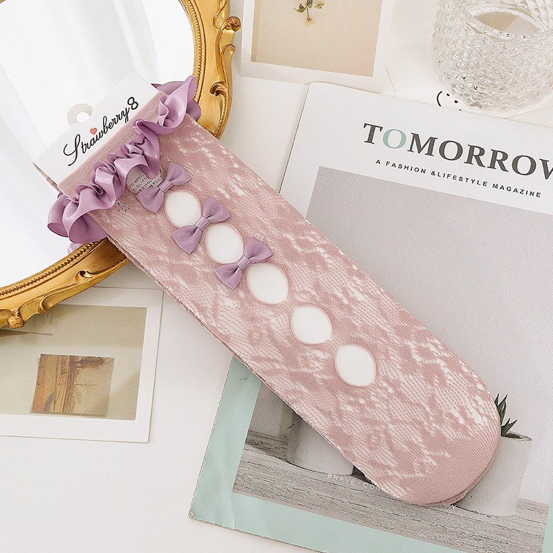 22 년 로리타 봄과 여름 어린이 캔디 컬러 새틴 레이스 중공 보우 미드 튜브 스태킹 양말 부모-자식스토어 가기