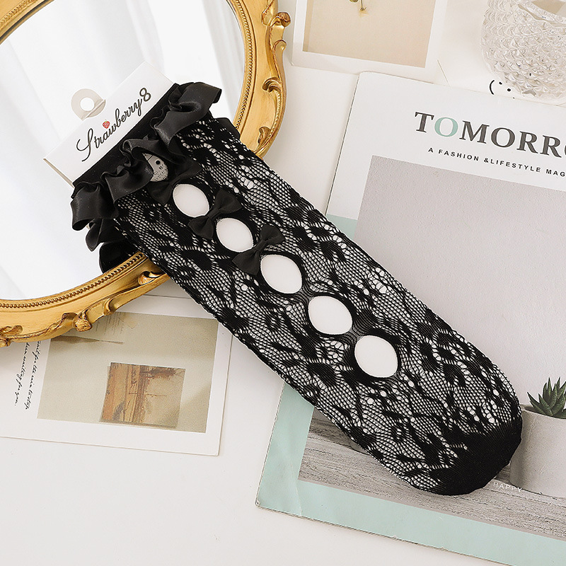 22 년 로리타 봄과 여름 어린이 캔디 컬러 새틴 레이스 중공 보우 미드 튜브 스태킹 양말 부모-자식