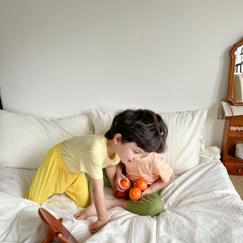 2024 여름 뼈없는 어린이 모달 티셔츠 반팔 한국 스타일 새 여자 마스크 바닥 셔츠 탑 아동 의류스토어 가기