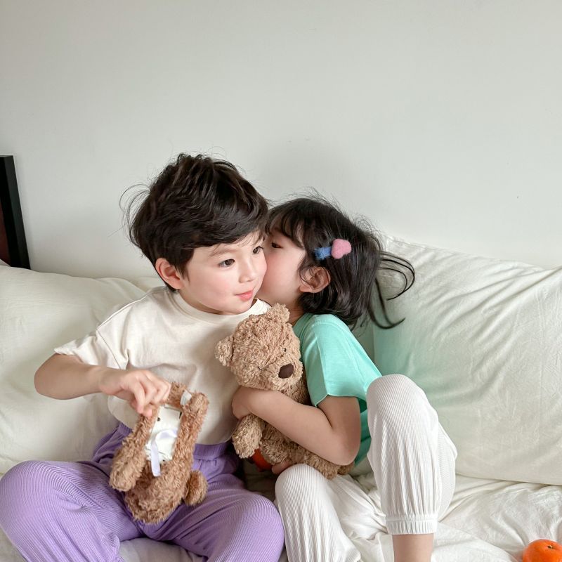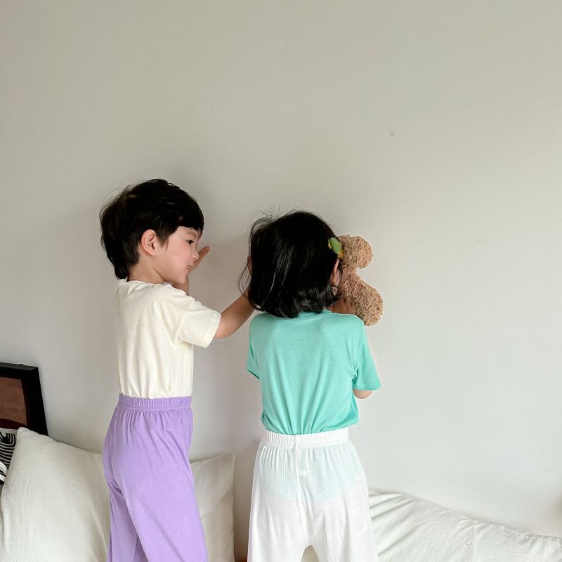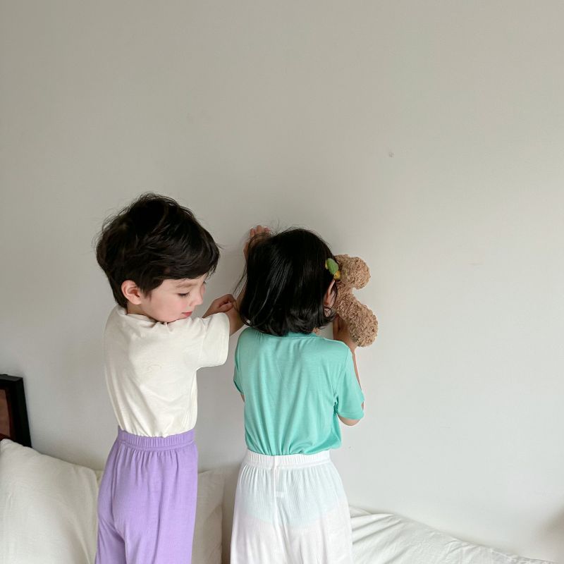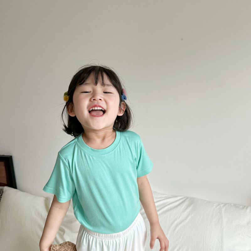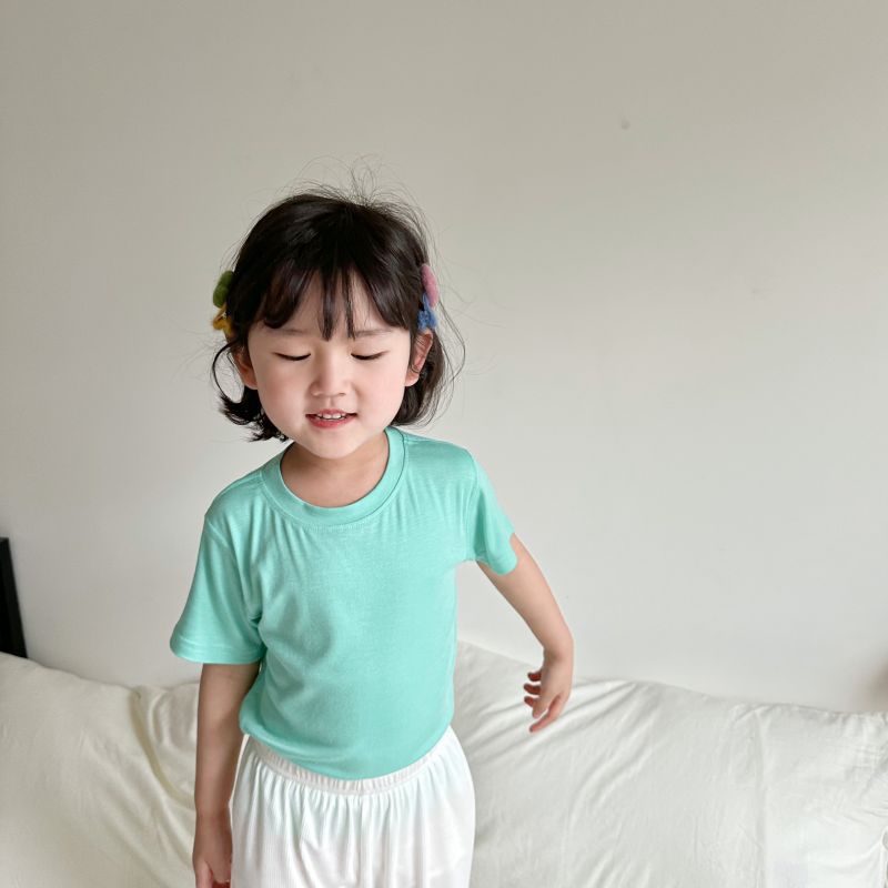 2024 여름 뼈없는 어린이 모달 티셔츠 반팔 한국 스타일 새 여자 마스크 바닥 셔츠 탑 아동 의류