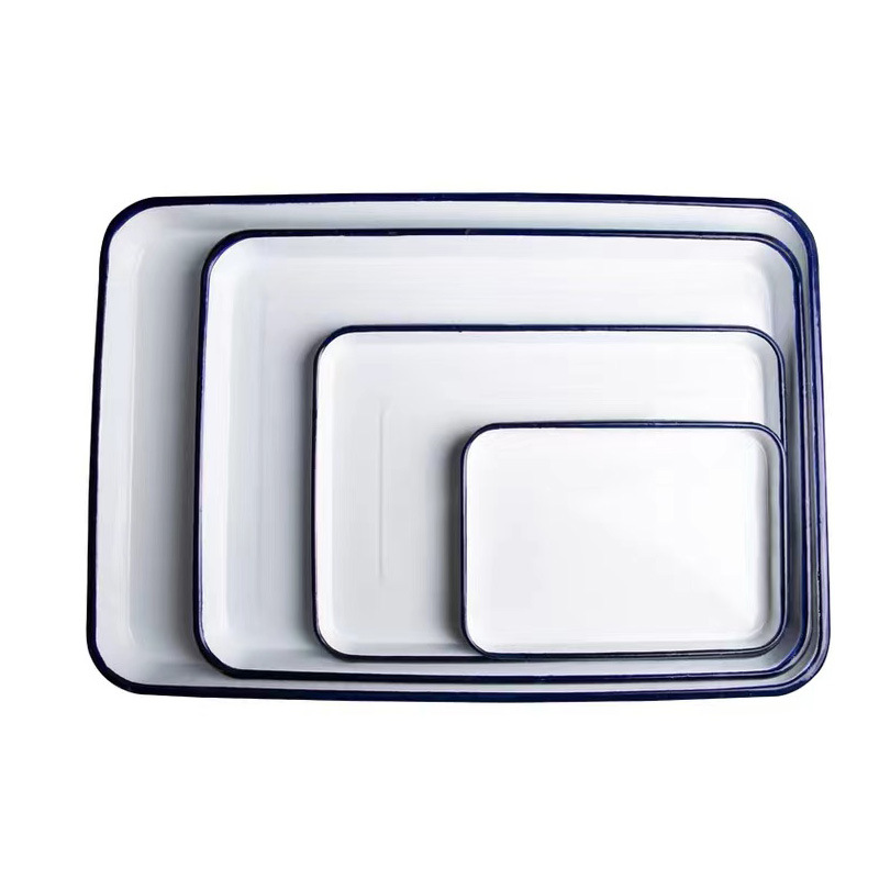 제조 재고 판매 에나멜 트레이 에나멜 사각형 접시 화이트 도자기 사각형 접시 실험실 직사각형 트레이스토어 가기