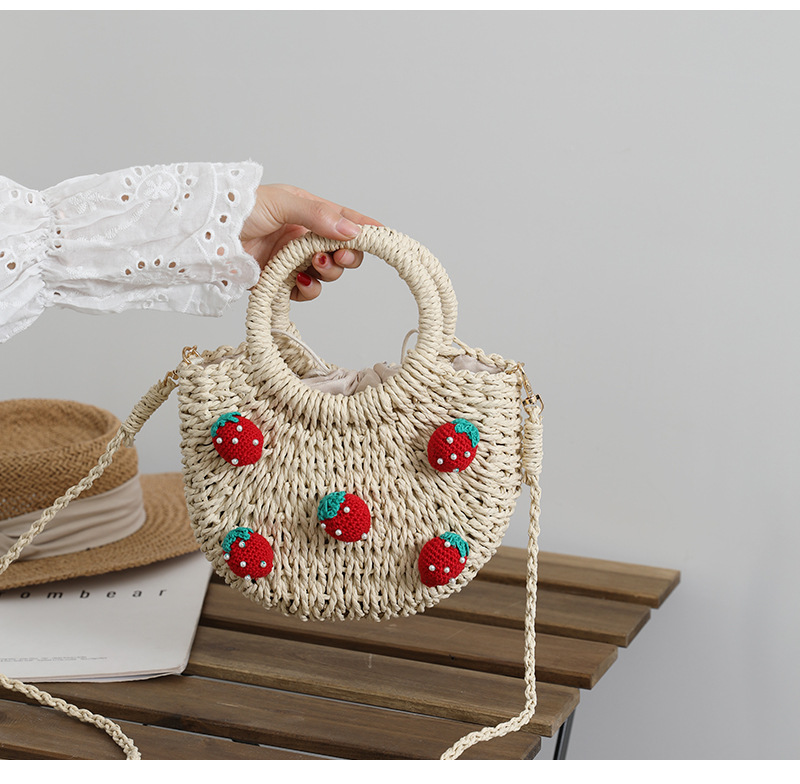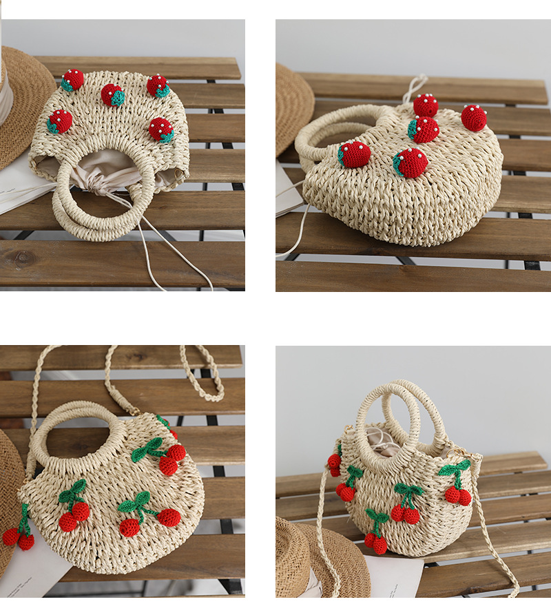 2024년 신상 귀여운 체리 스타일 풀백 핸드메이드 밀짚 가방 딸기 크로스백 휴가용 비치백스토어 가기