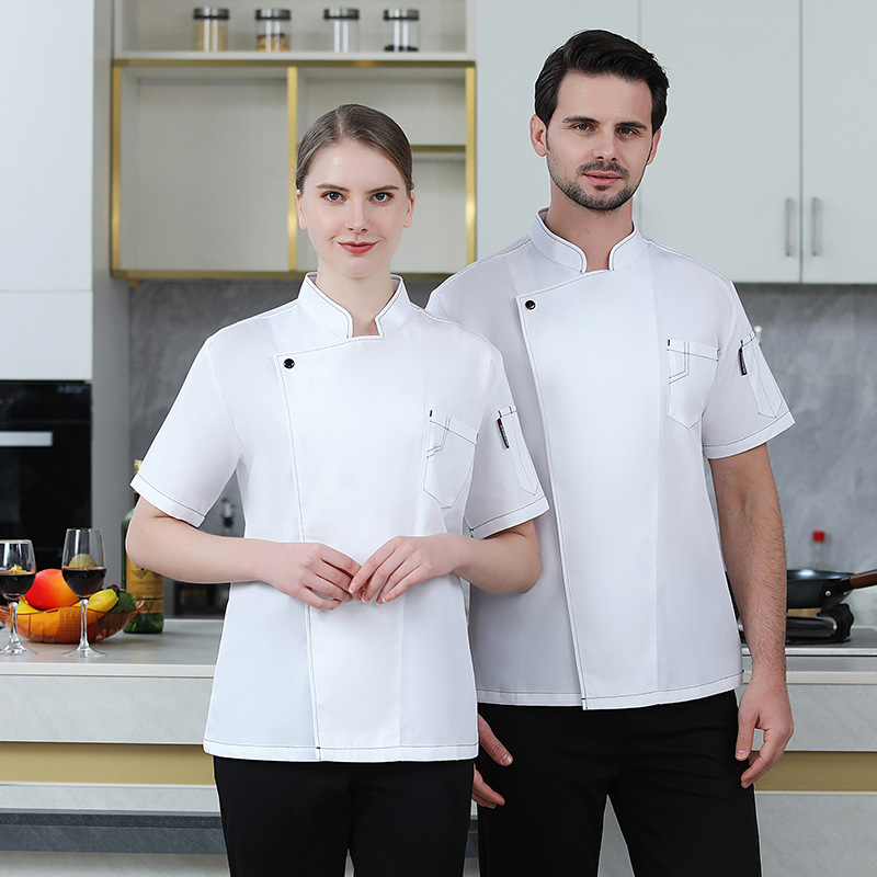 요리사 작업복 남성용 반팔 여름 얇은 통기성 중국 스타일 레스토랑 호텔 주방 요리사 옷 반팔