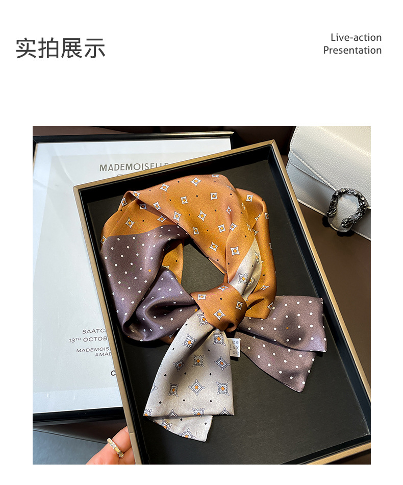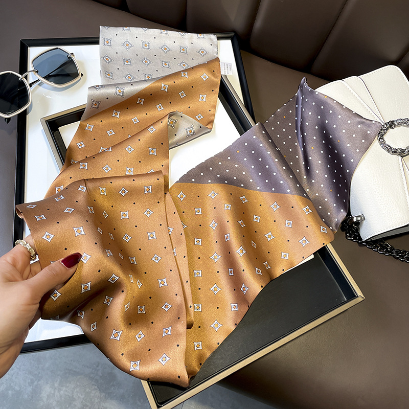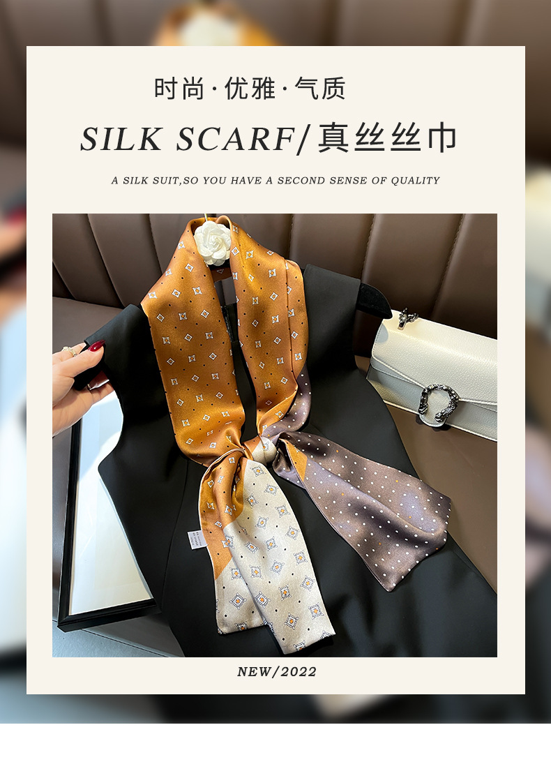 항저우 150*15cm 더블 실크 롱 스카프 리본 물방울 무늬 기하학적 색상 매칭 여성 작은 스카프와 봄 가을 화이트 칼라