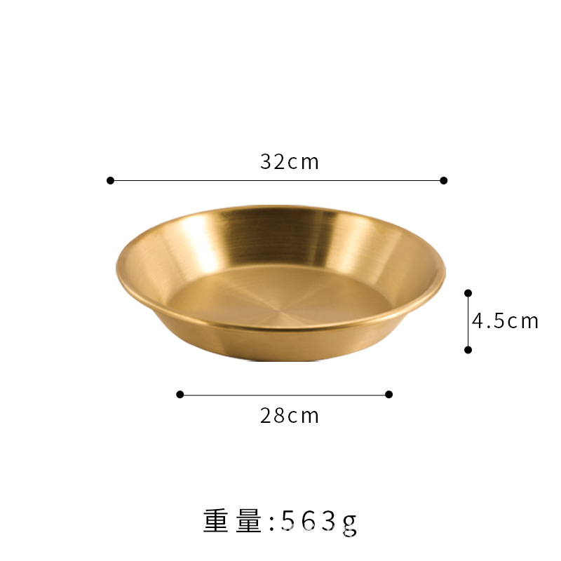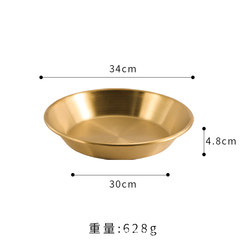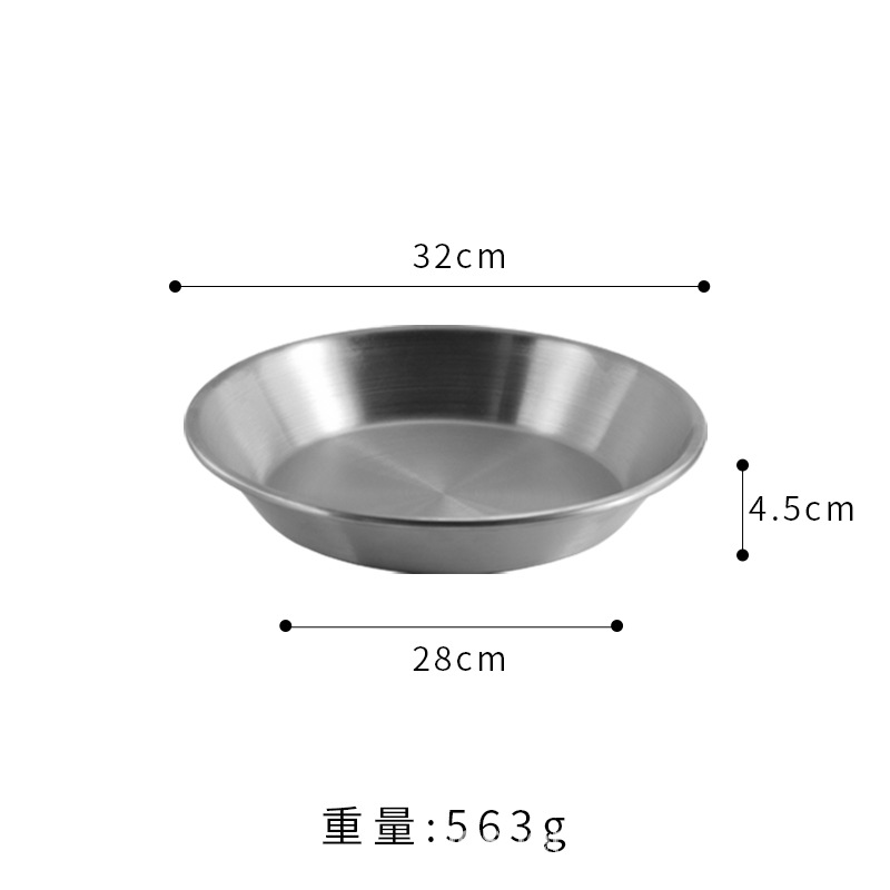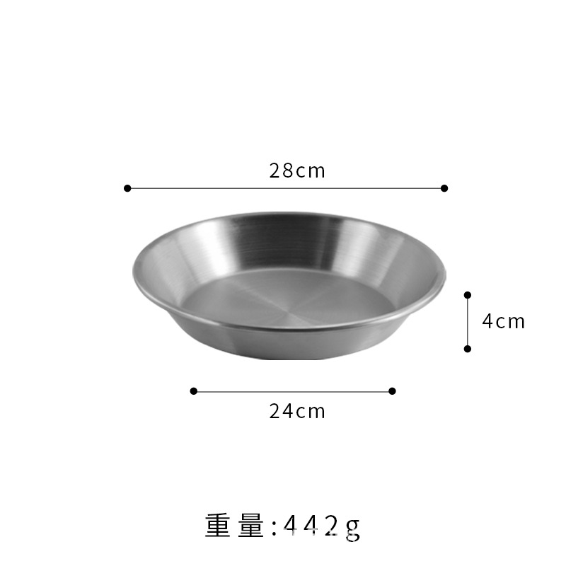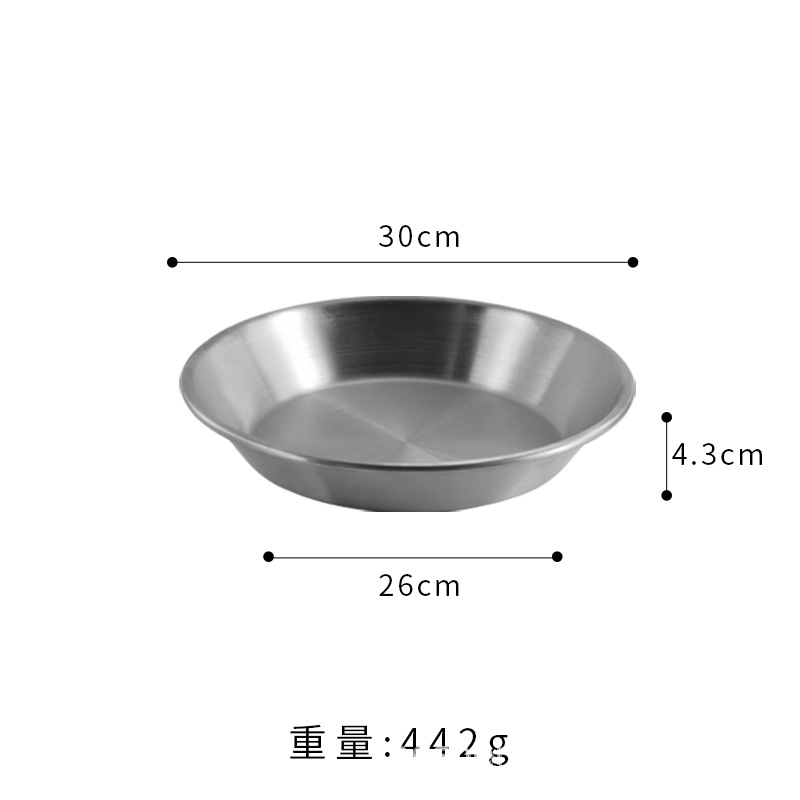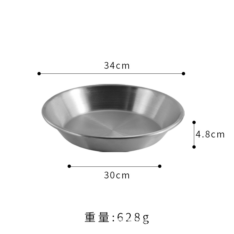 스트레이트 두꺼운 한국식 스테인레스 스틸 피자 플레이트 황금 대형 플랫 바닥 패스트리 뷔페 라운드 요리