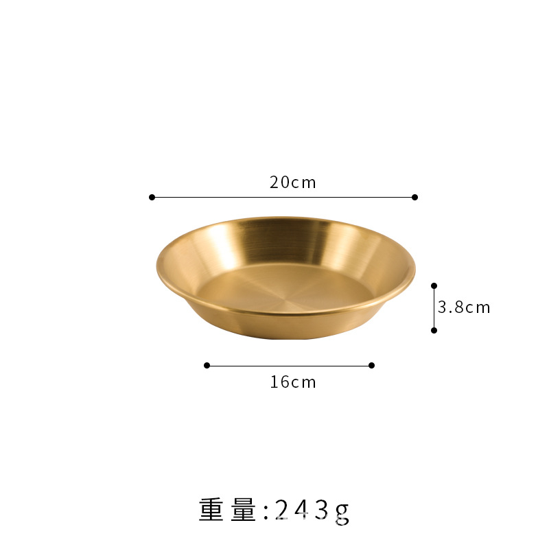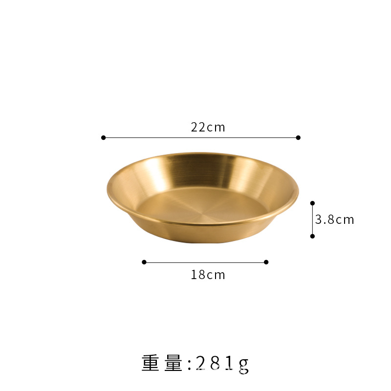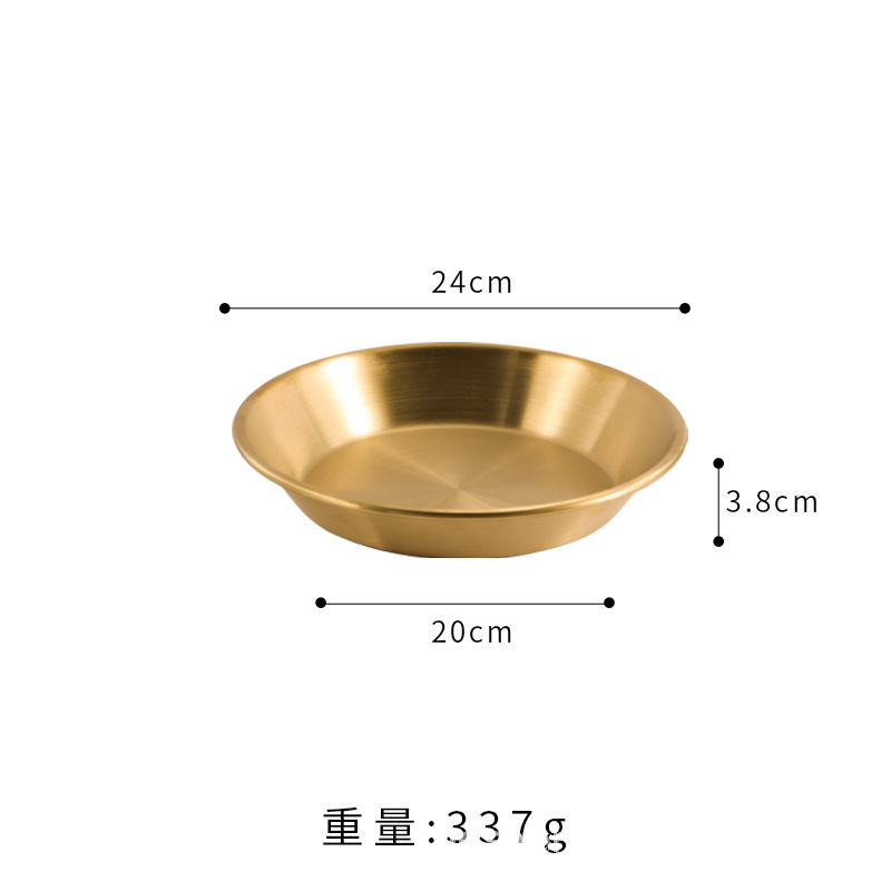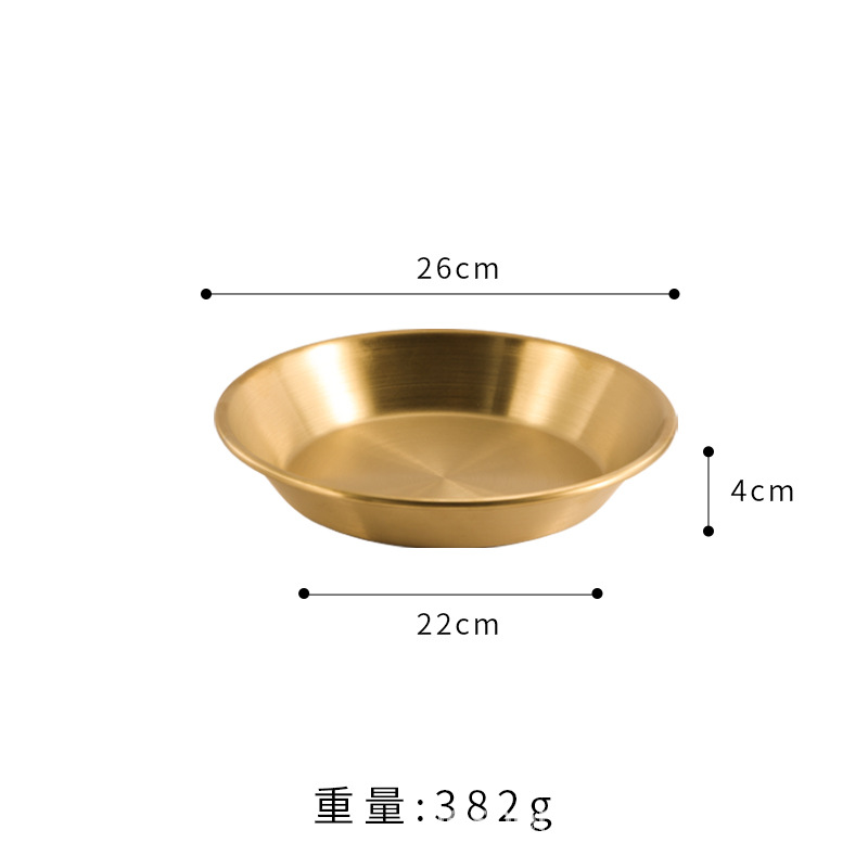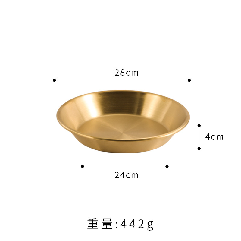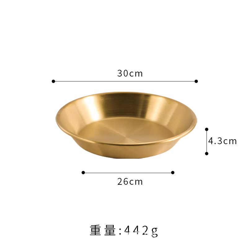 스트레이트 두꺼운 한국식 스테인레스 스틸 피자 플레이트 황금 대형 플랫 바닥 패스트리 뷔페 라운드 요리