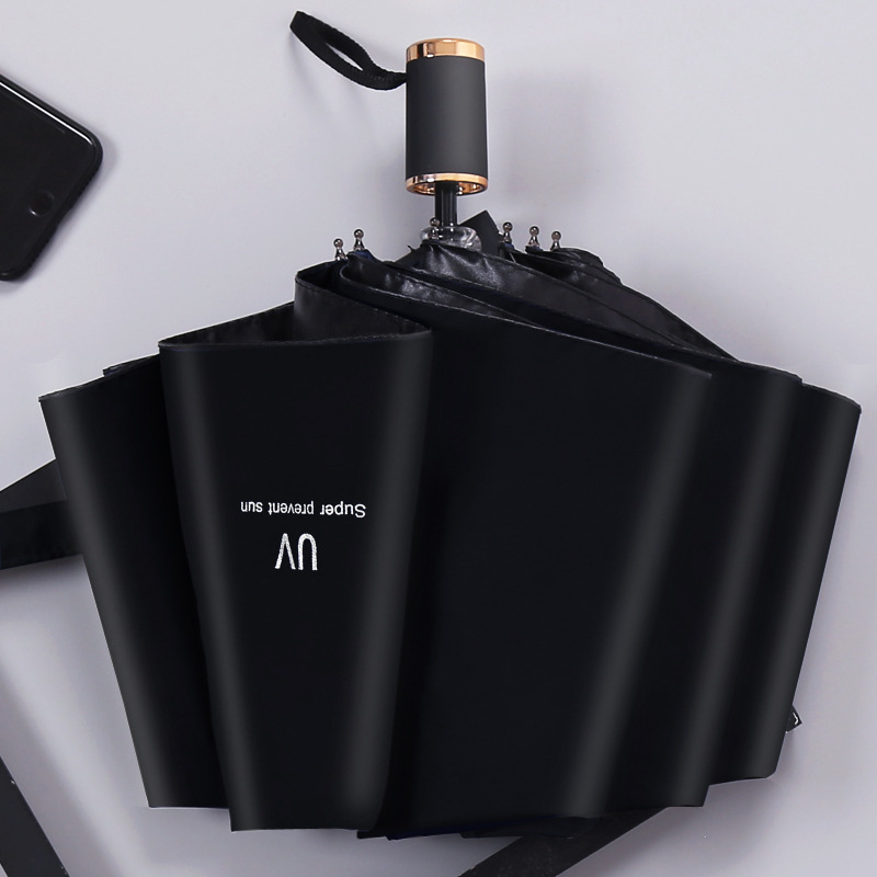 우산 트리플 접이식 두꺼운 검은 고무 태양 보호 차양 모리 스타일 태양 우산 UV 9 합판 이중 사용 우산스토어 가기