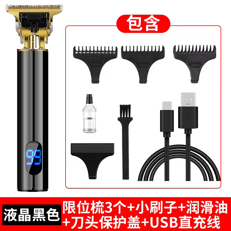 국경 간 폭발 LCD 가정용 헤어 클리퍼 레트로 면도 헤드 오일 헤드 전기 클리퍼 T9 면도기 조각 전기 클리퍼