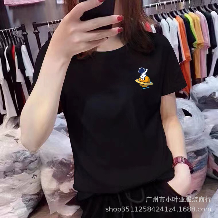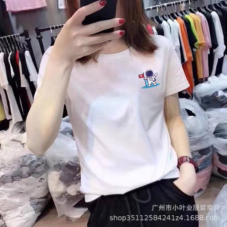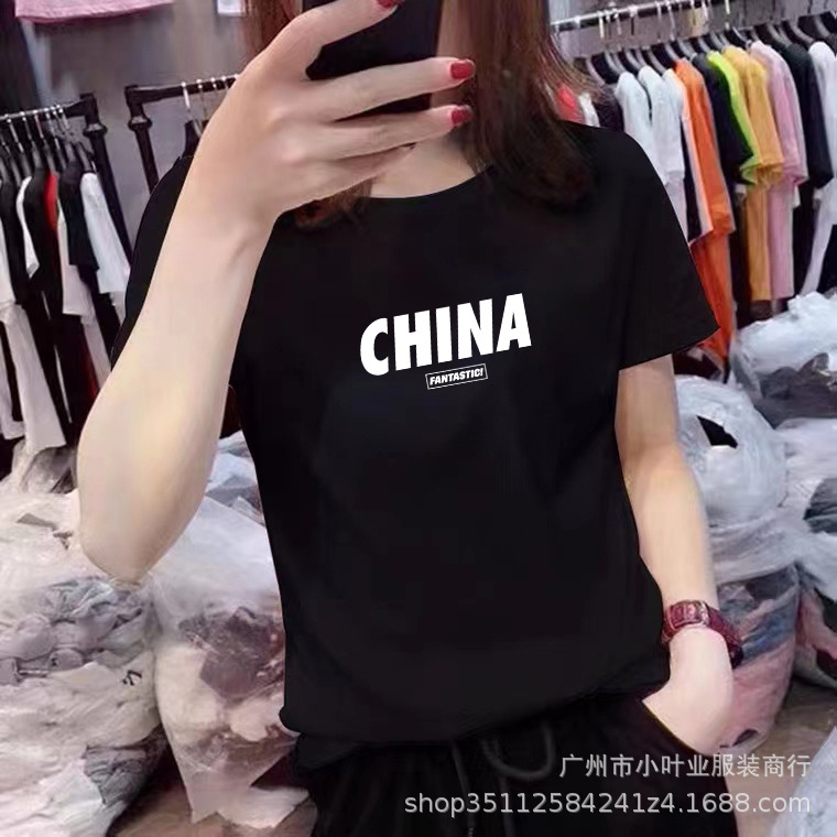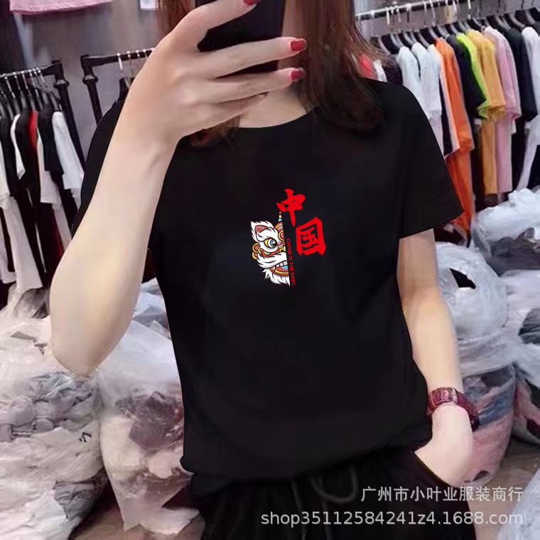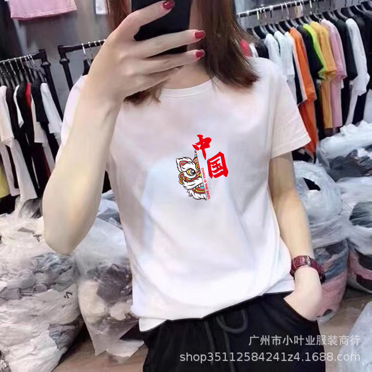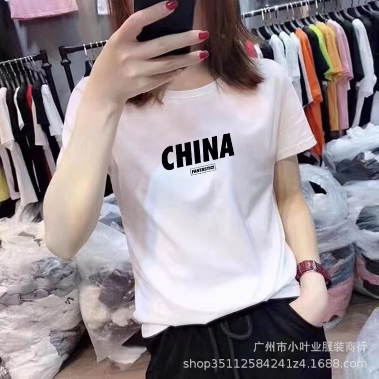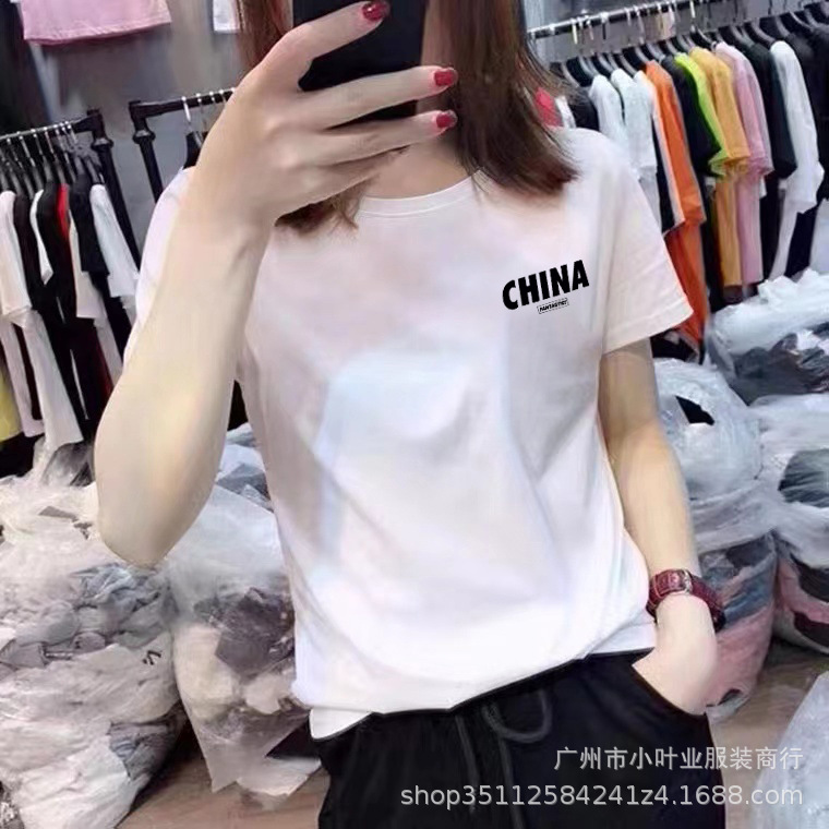 면 반팔 티셔츠 여성용 2023 여름 새로운 중국 패션 브랜드 중국 여성 루즈한 탑스토어 가기