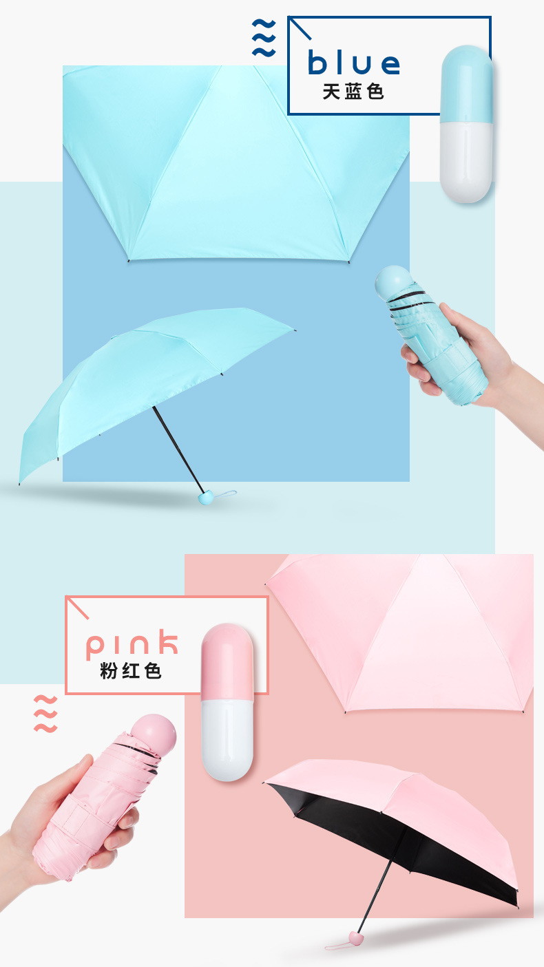 캡슐 우산 자외선 차단 태양 우산 여성용 초경량 미니 휴대용 포켓 우산 양산 태양 보호 5 배 우산