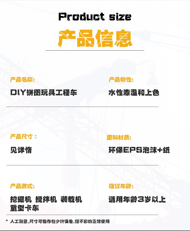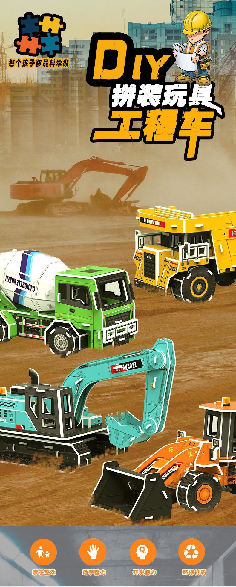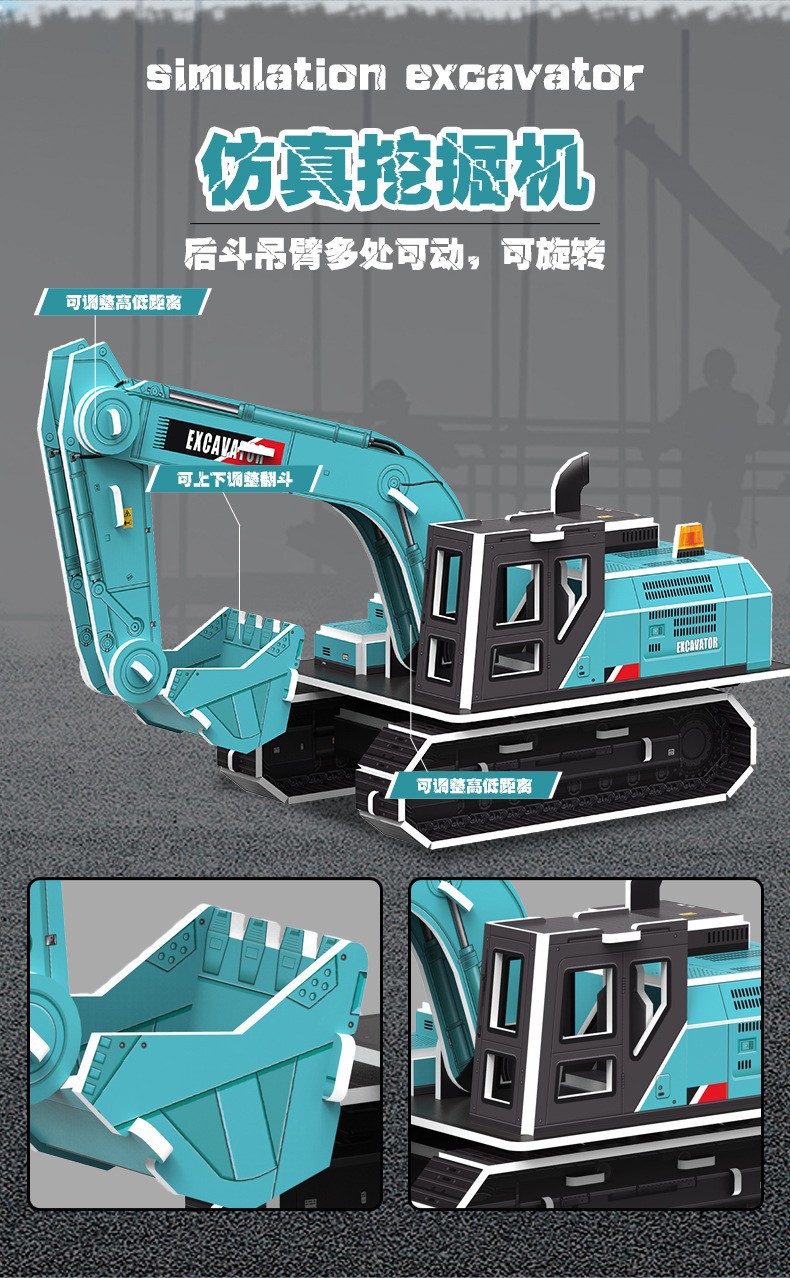 3D 종이 굴삭기 직소 퍼즐 공학 차량 시리즈 종이 직소 퍼즐 어린이 조기 교육 완구 재고 도매