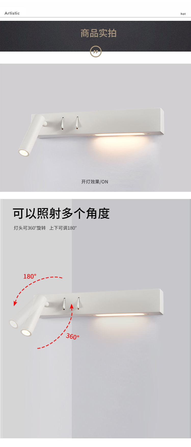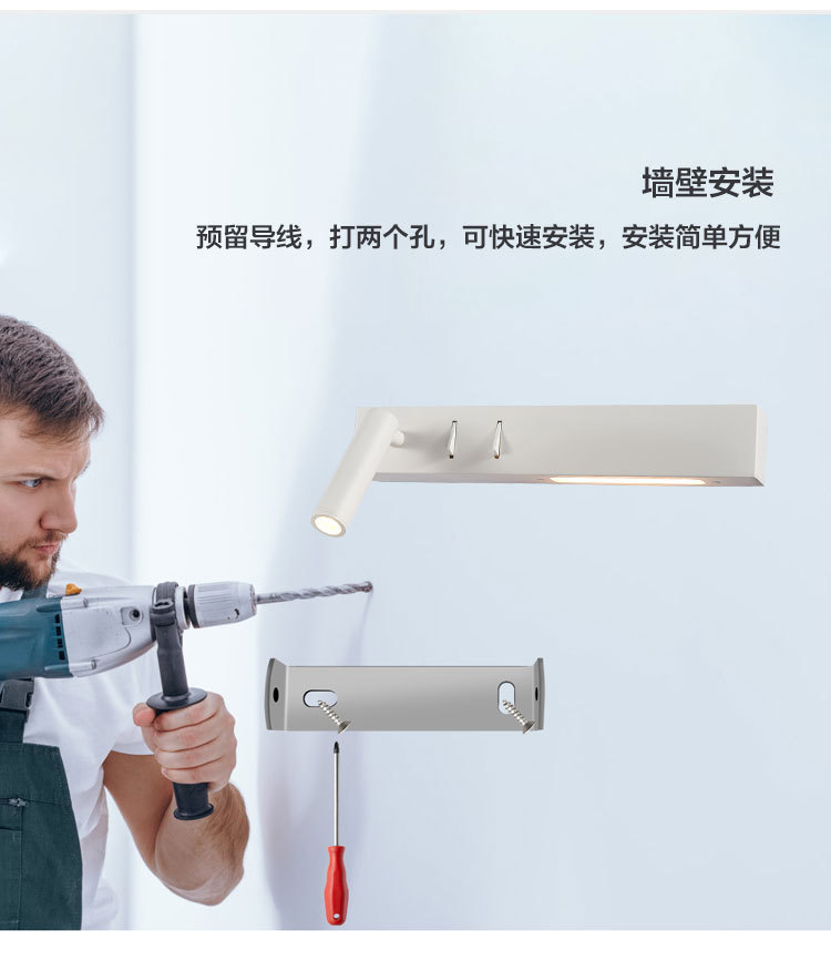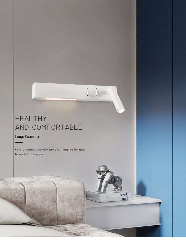 침실 벽 침대 옆 램프 북유럽 간단한 호텔 공학 이중 스위치 LED 벽 램프 350 회전 독서 등 수 있습니다