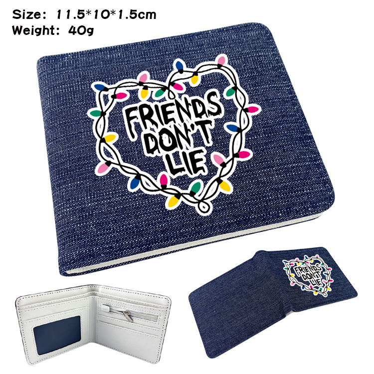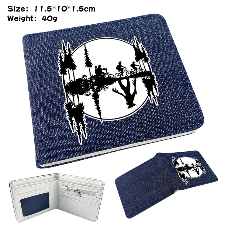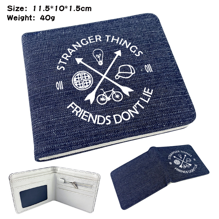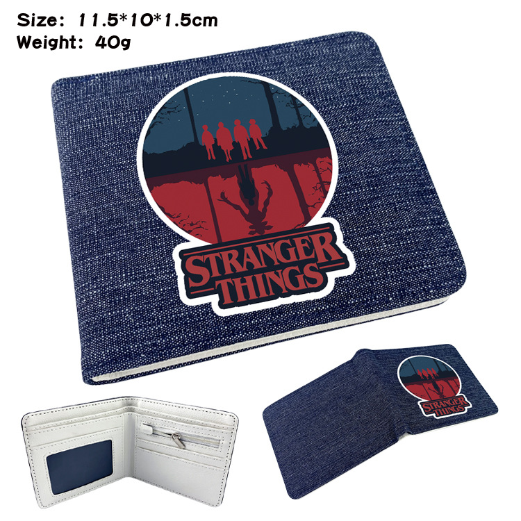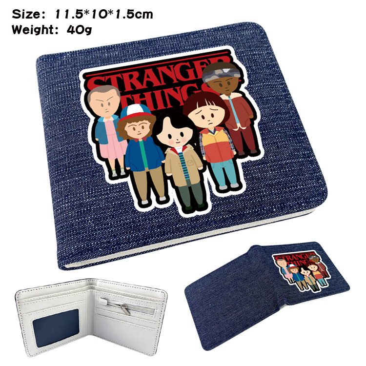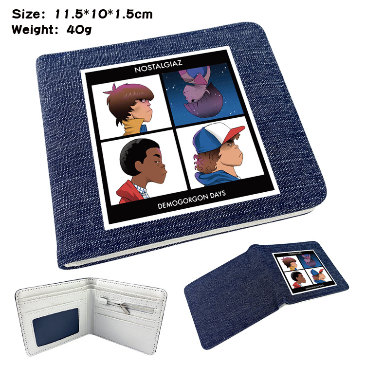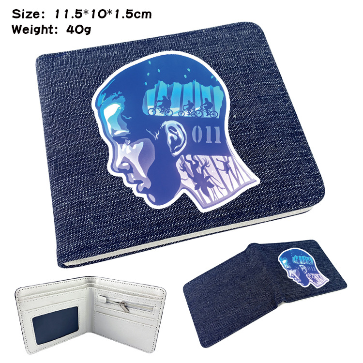 두 폴드 남자와 여자의 지갑 주위에 애니메이션 이상한 이야기 학생 만화 동전 지갑 짧은 데님 반 폴드 지갑스토어 가기