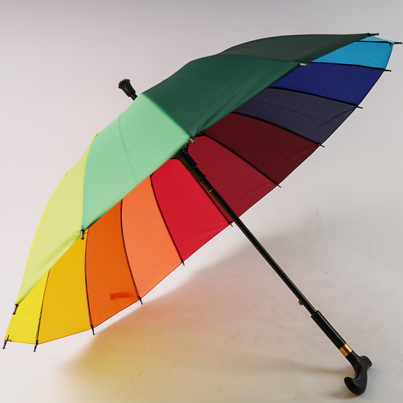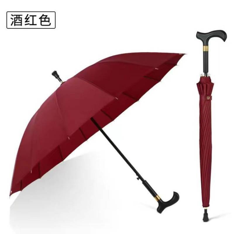 16 뼈 노인 지팡이 우산 직선 우산 선물 우산 미끄럼 방지 목발 우산 야외 골프 우산 재고