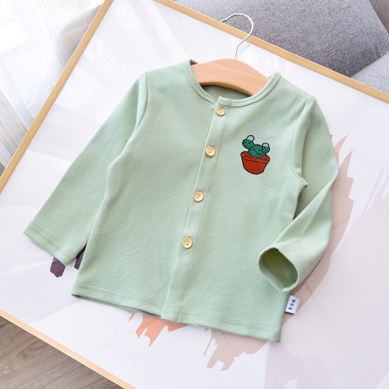 아기 탑 단색면 긴팔 카디건 아기 원피스 속옷 편안한면 두꺼운 가을 옷 어린이 옷 봄 바닥 셔츠스토어 가기