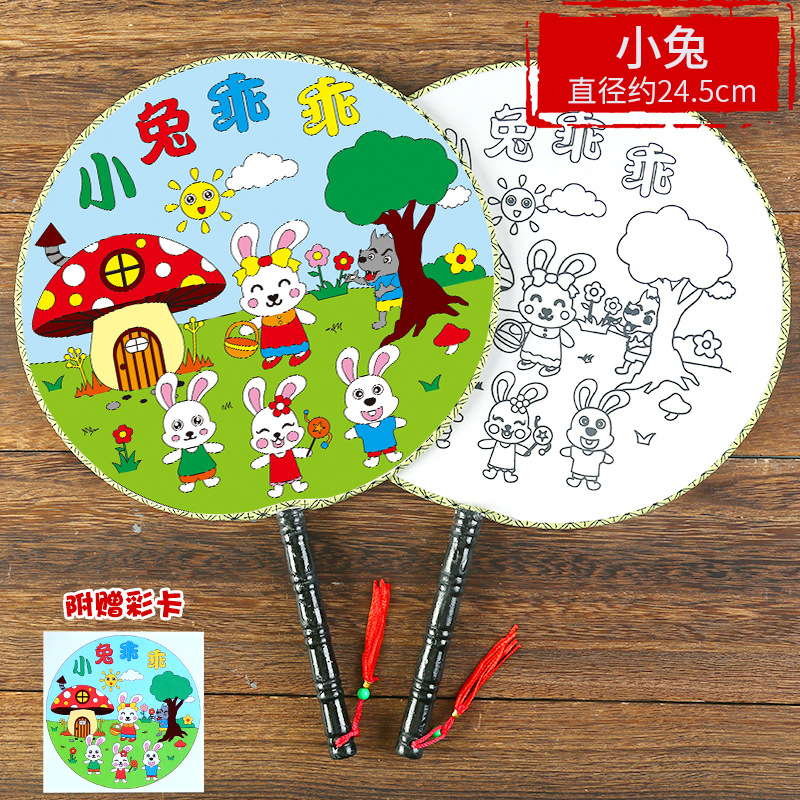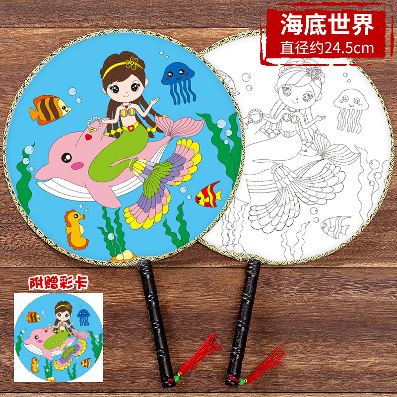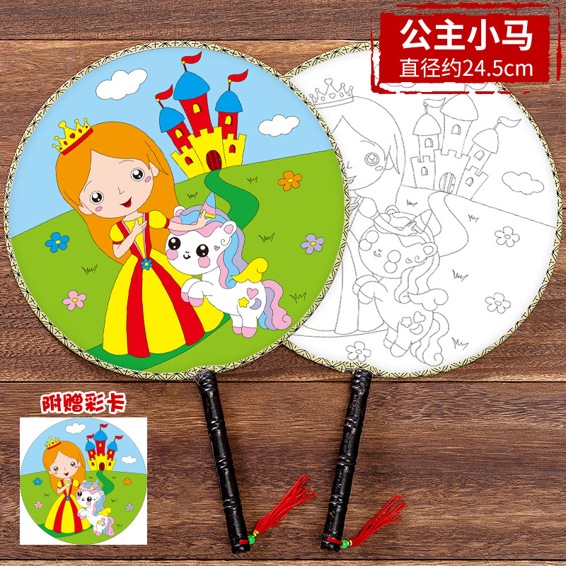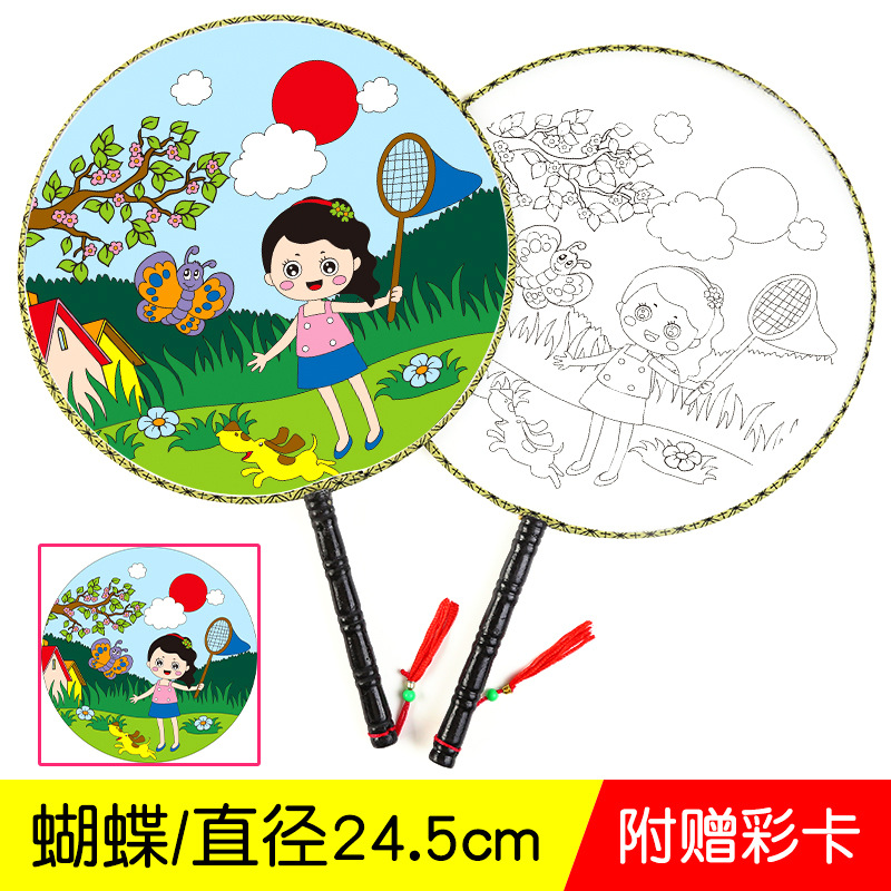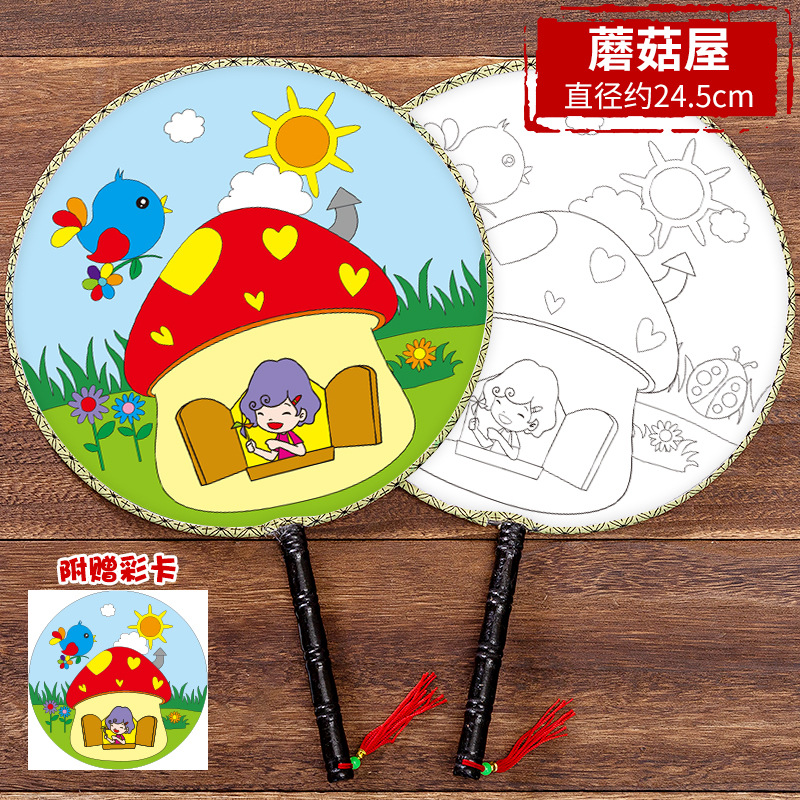 어린이 DIY 그림 팬 빈 궁전 팬 손으로 그린 팬 원형 팬 컬러 페인트 색칠 그룹 팬 수제 재료스토어 가기