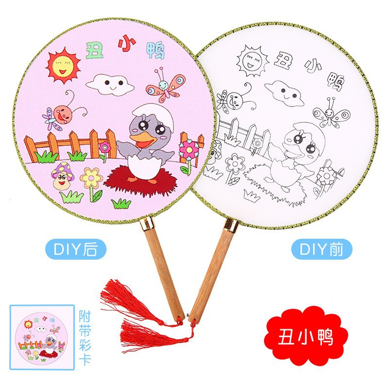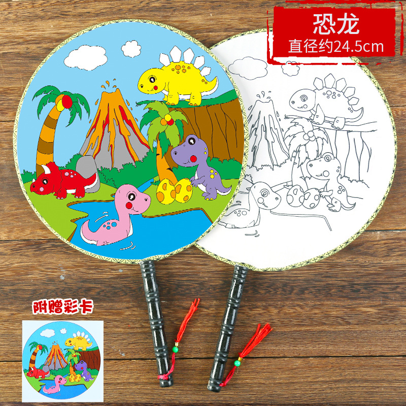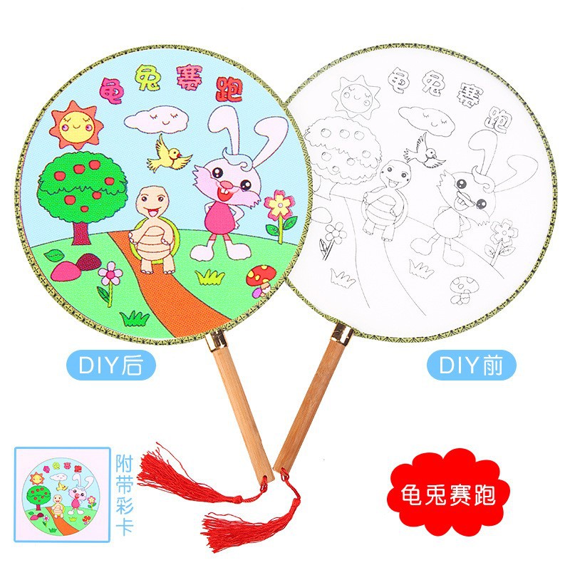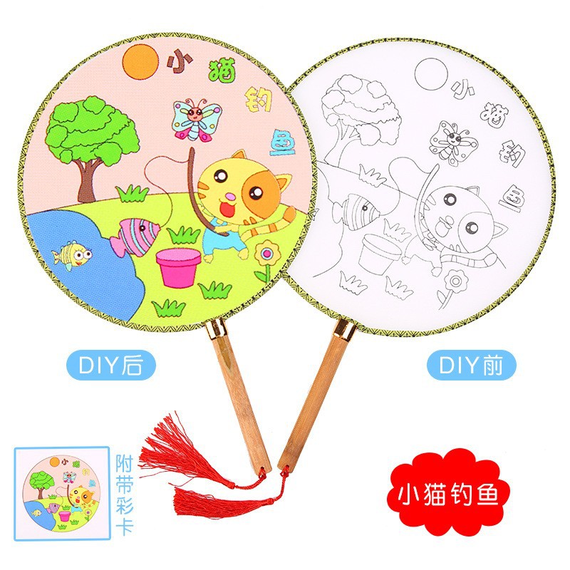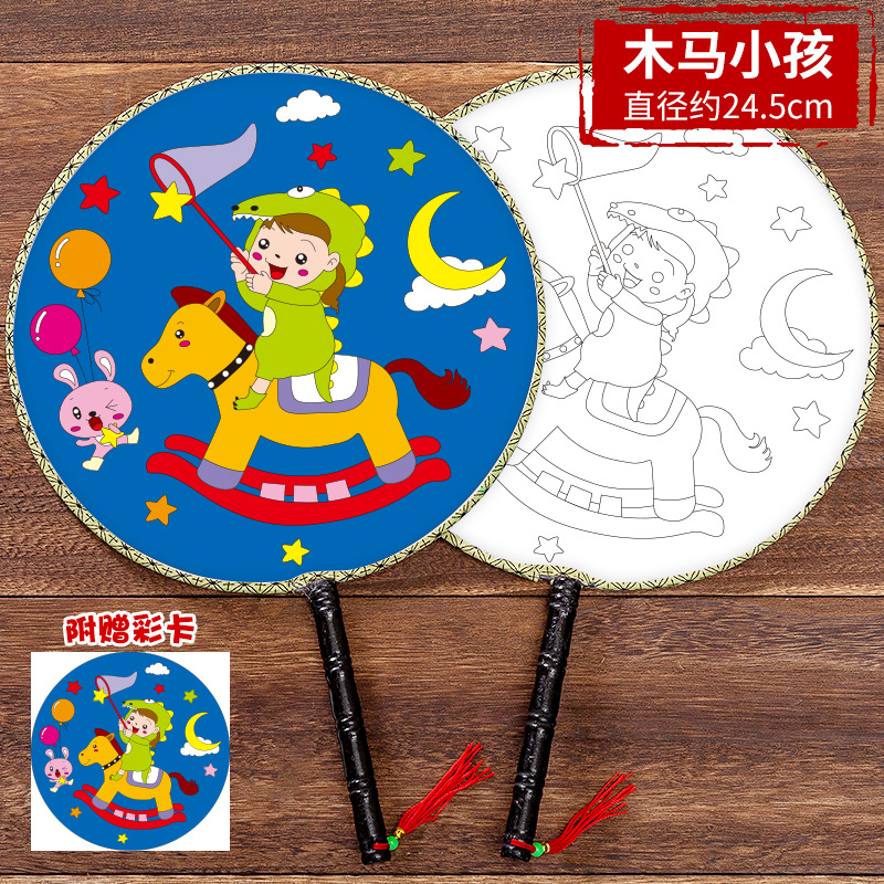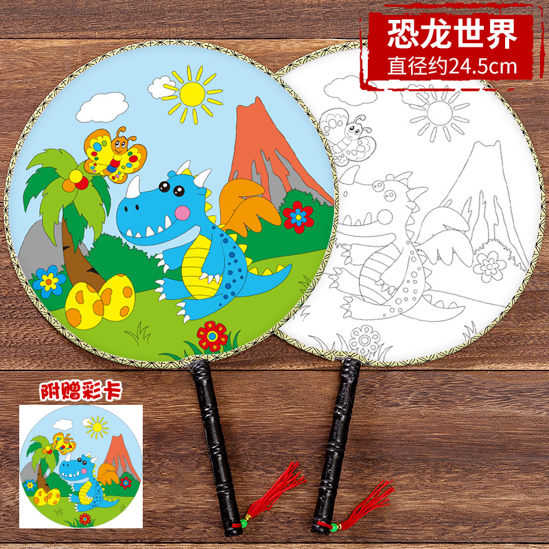 어린이 DIY 그림 팬 빈 궁전 팬 손으로 그린 팬 원형 팬 컬러 페인트 색칠 그룹 팬 수제 재료스토어 가기