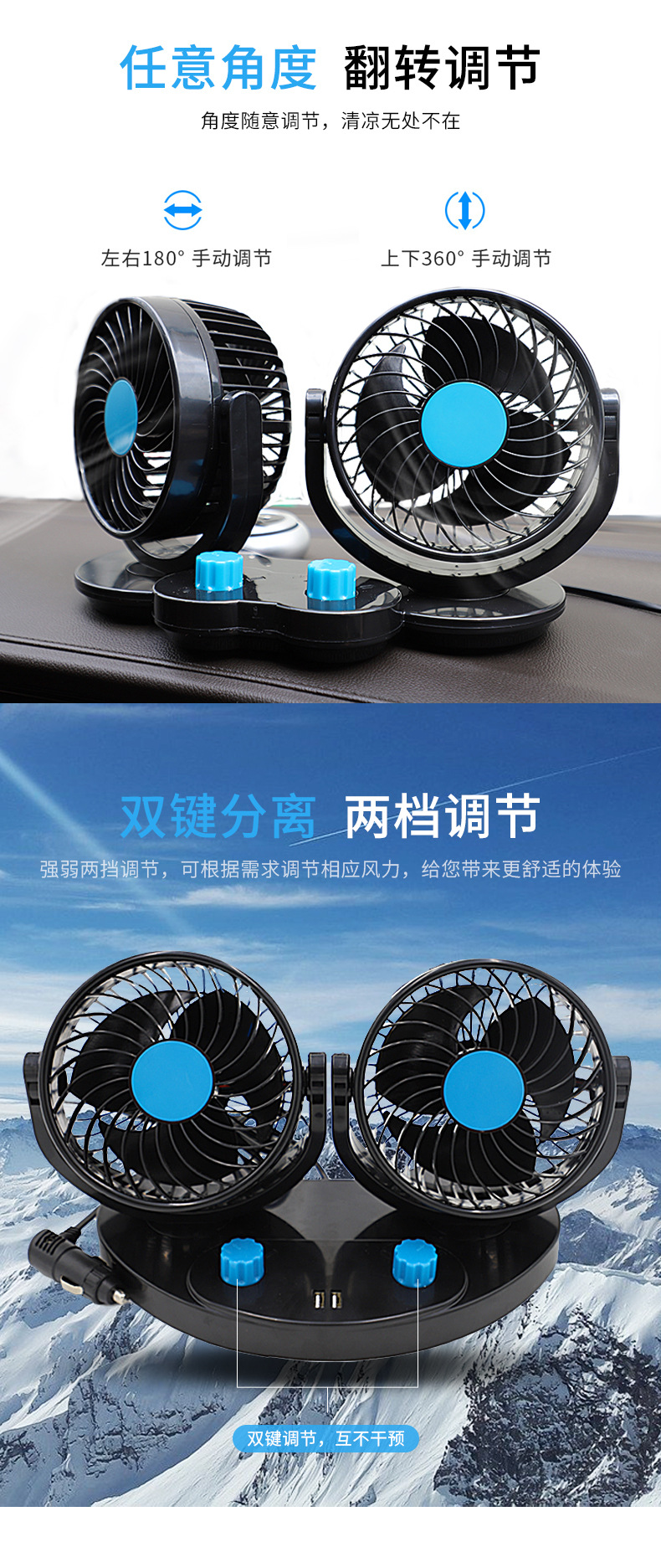 자동차 선풍기 대형 트럭 12V24V 냉장 USB 충전식 자동차 더블 헤드 팬 대형 바람 냉동 팬스토어 가기