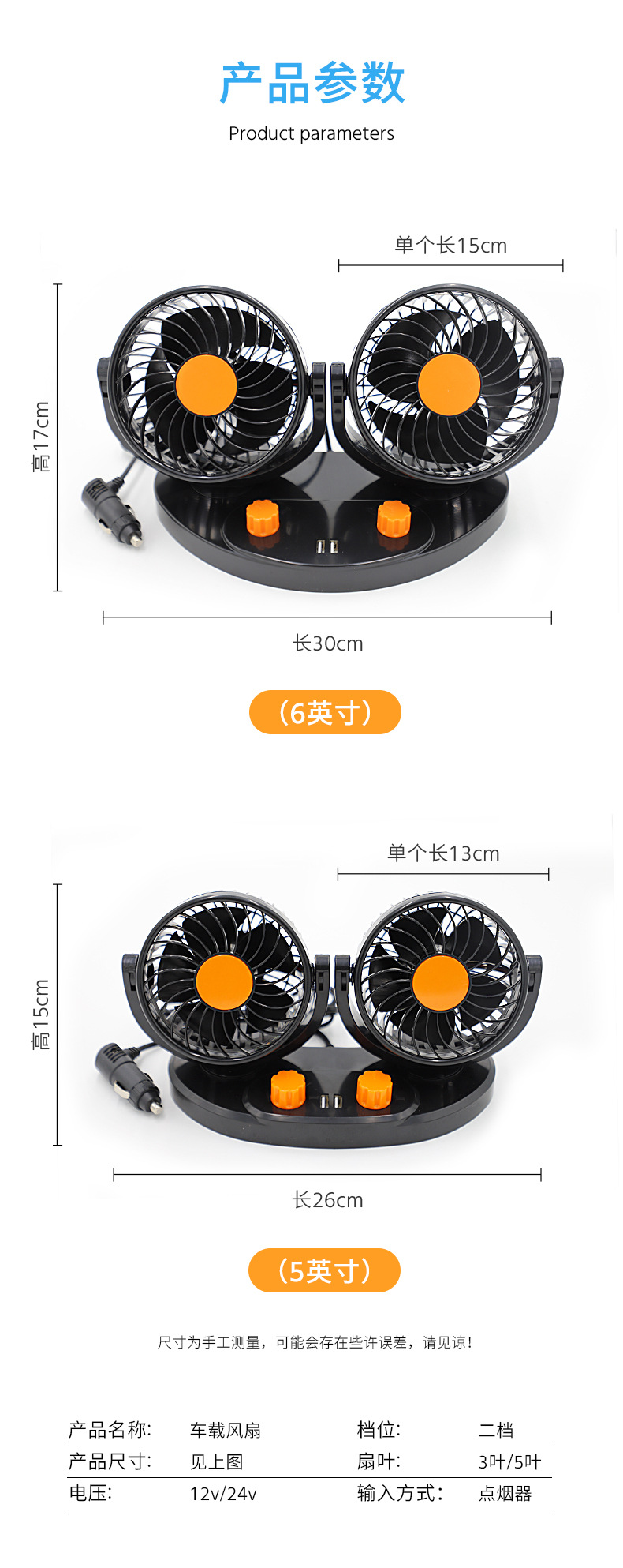자동차 선풍기 대형 트럭 12V24V 냉장 USB 충전식 자동차 더블 헤드 팬 대형 바람 냉동 팬