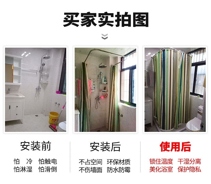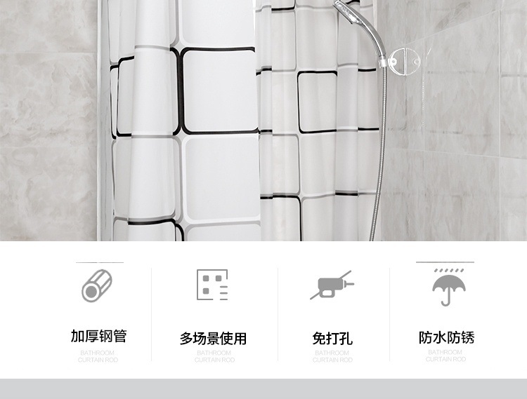 보이지 않는 샤워 커튼 세트 U 자형 비 천공 욕실 파티션 커튼 화장실 천 방수 교수형 커튼 욕조 U 자형 천 제조 업체스토어 가기