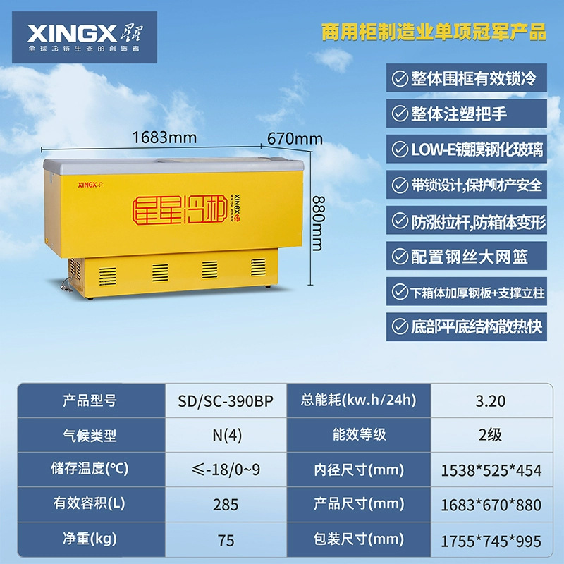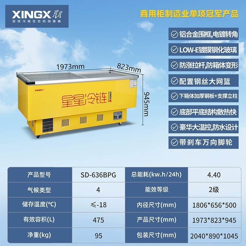 스타 상업용 냉장 냉동고 슈퍼마켓 케이터링 주문 캐비닛 아일랜드 캐비닛 유리 도어 아이스크림 급속 냉동 디스플레이 캐비닛스토어 가기
