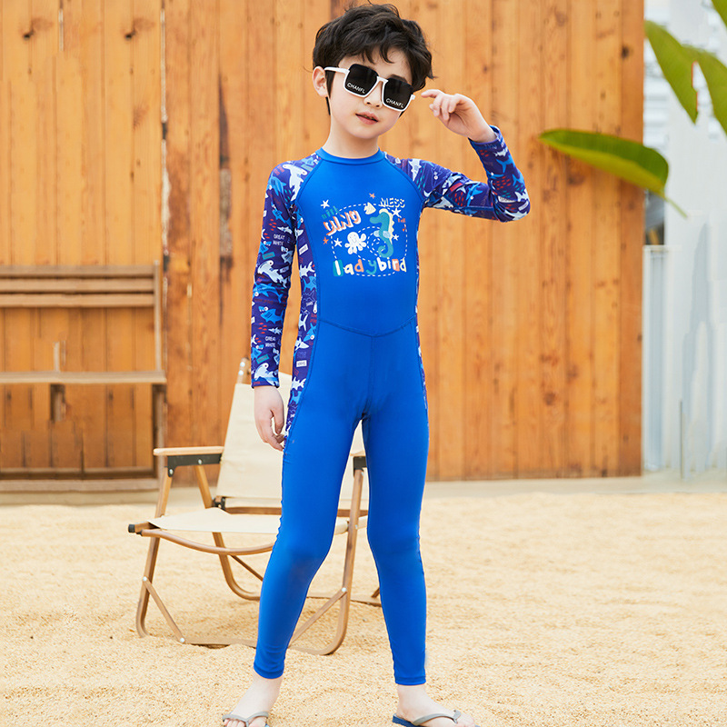 새로운 소년 소년 자외선 차단제 잠수복 속건 수영복 긴팔 바지 대형 어린이를위한 원피스 수영복