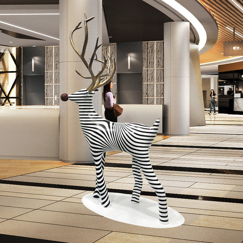 조각 공장 호텔 로비 추상 동물 바닥 장식 수지 조각 유리 섬유 줄무늬 사슴 조각스토어 가기