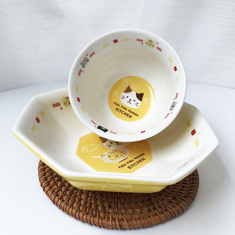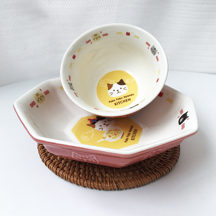 일본식 식기 세라믹 그릇 귀여운 고양이 가정용 그릇과 접시 세트 언더 글레이즈 색상 불규칙한 디너 플레이트 샐러드 그릇스토어 가기