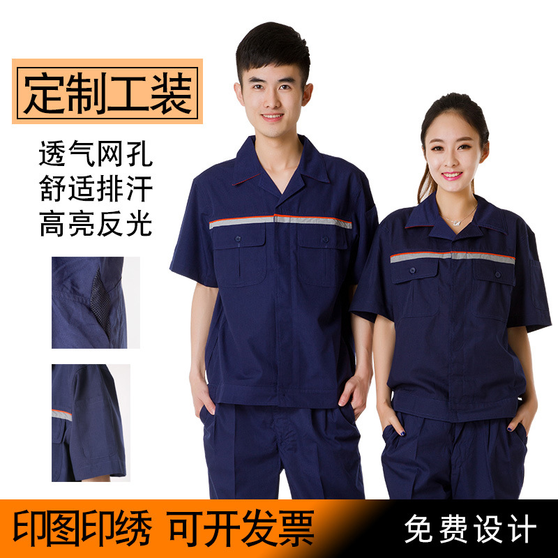 여름 반팔 작업복 세트 자동 수리 남자의 유니폼 공장 의류 재킷 작업복 전기 반 소매 공학 의류 작업복 인쇄스토어 가기