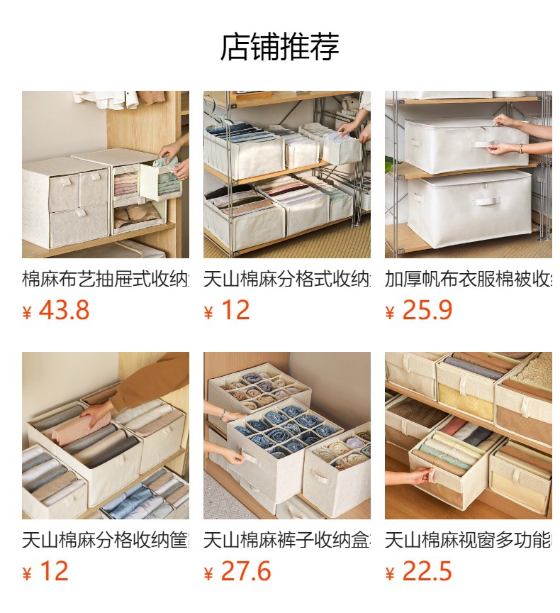 Tianshan 면화와 린넨 수납 바구니 가정용 옷 옷장 수납 수납 상자 속옷 바지 서랍 형 수납 상자스토어 가기