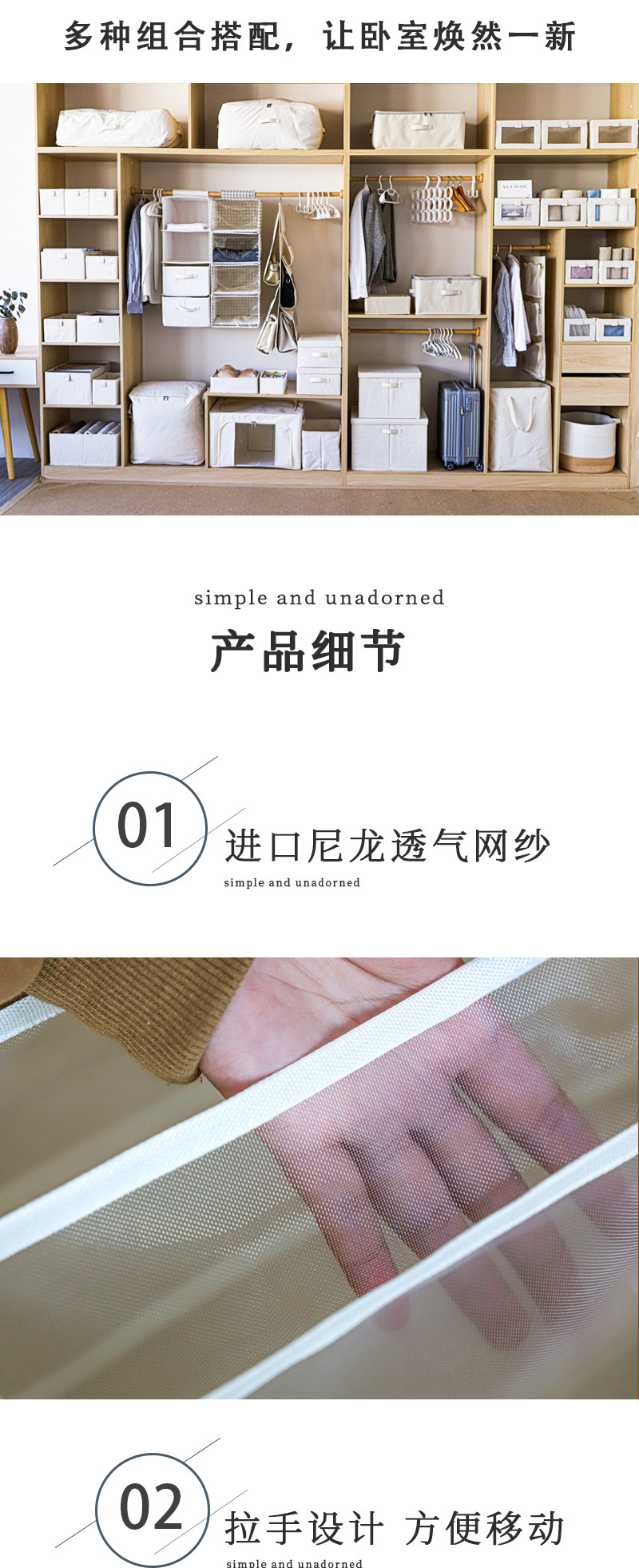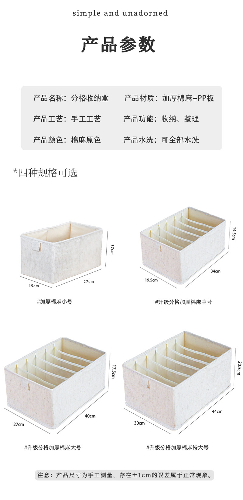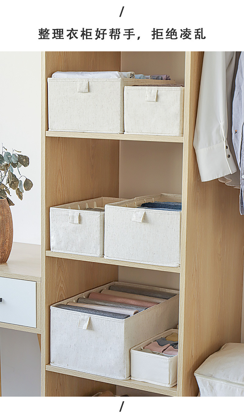 Tianshan 면화와 린넨 수납 바구니 가정용 옷 옷장 수납 수납 상자 속옷 바지 서랍 형 수납 상자