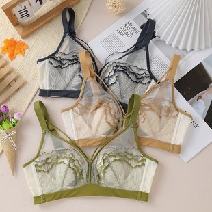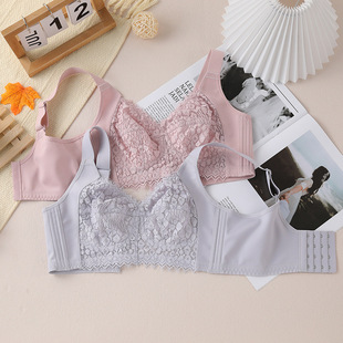 大码全罩杯大胸显小文胸薄款蕾丝防凸点大罩杯显瘦无钢圈内衣女