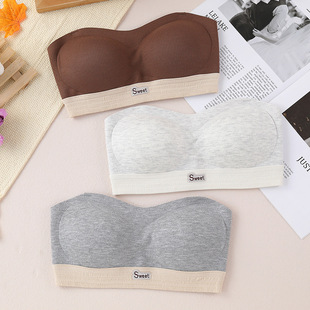 无痕美背乳胶内衣女夏季薄款抹胸裹胸上衣一体带胸垫吊带背心7236