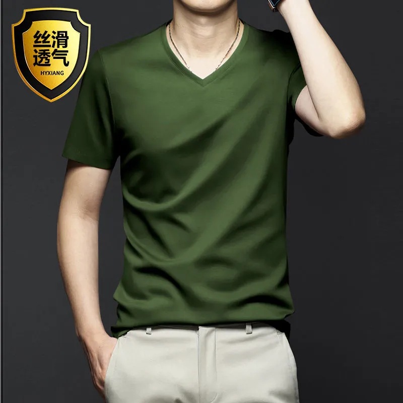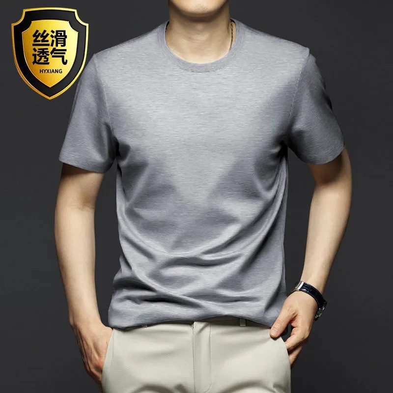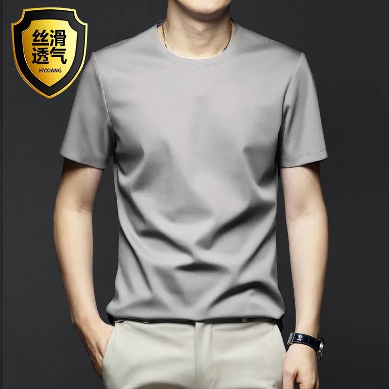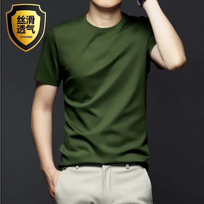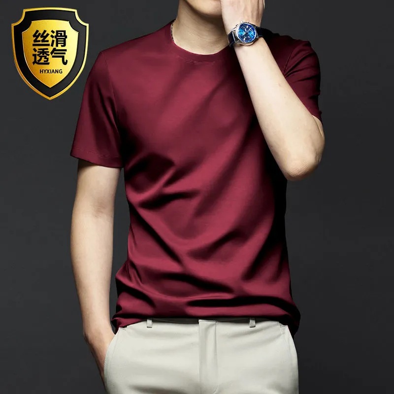 여름 시원한 모달 반팔 티셔츠 남성용 트렌디 한 솔리드 컬러 내부 라운드 넥 바닥 셔츠 얇은 통기성 탑스토어 가기