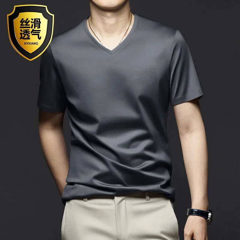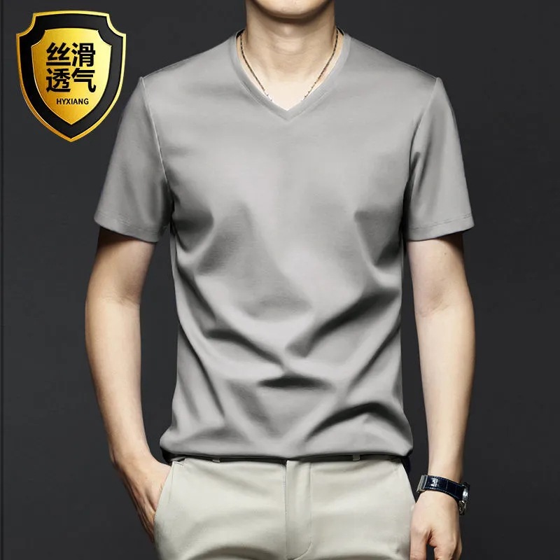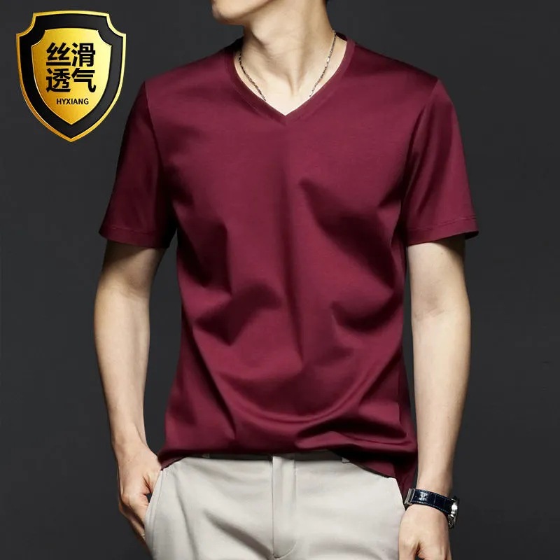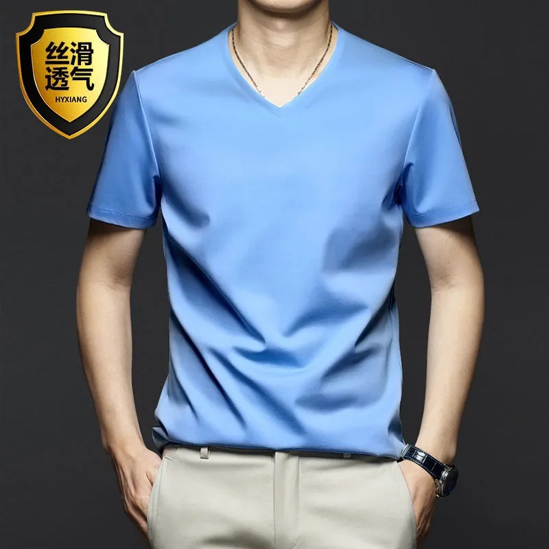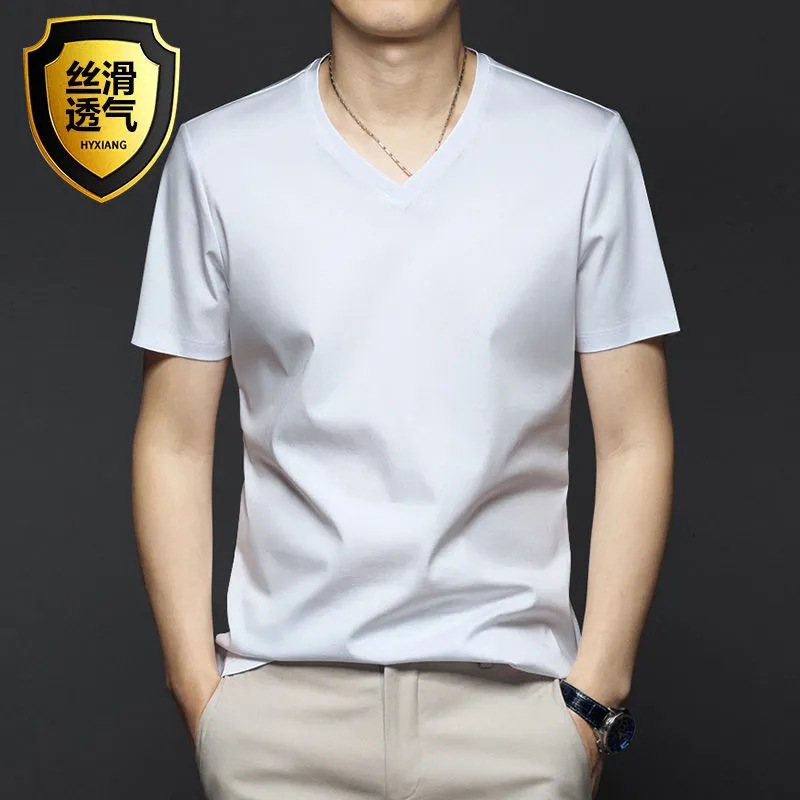 여름 시원한 모달 반팔 티셔츠 남성용 트렌디 한 솔리드 컬러 내부 라운드 넥 바닥 셔츠 얇은 통기성 탑스토어 가기
