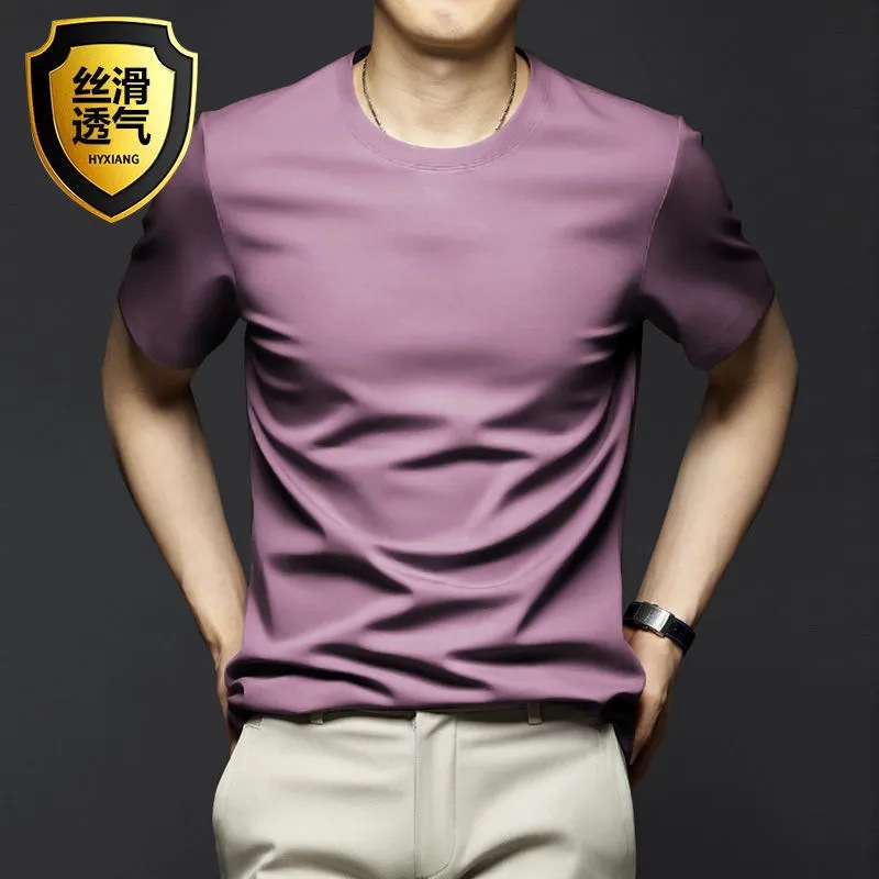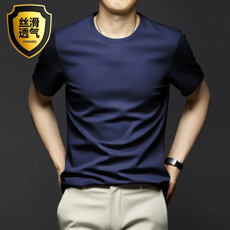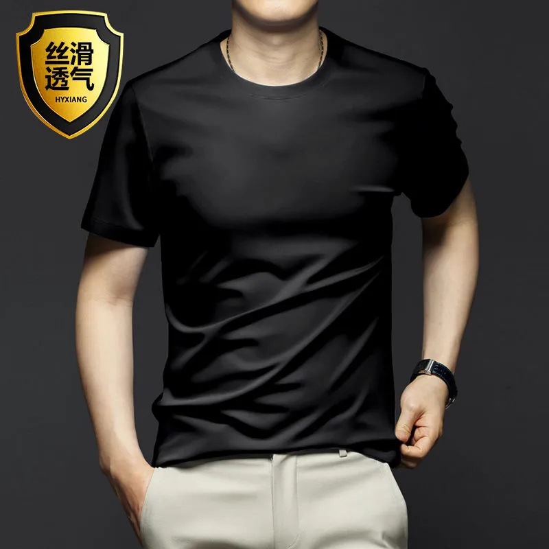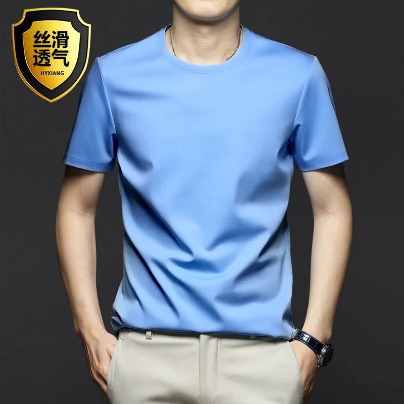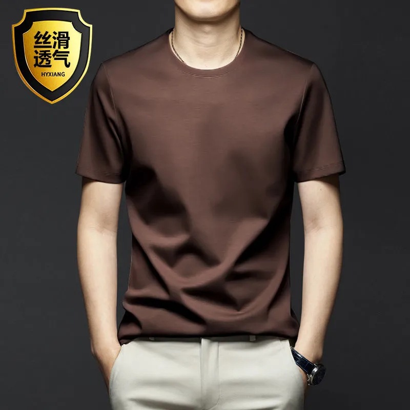 여름 시원한 모달 반팔 티셔츠 남성용 트렌디 한 솔리드 컬러 내부 라운드 넥 바닥 셔츠 얇은 통기성 탑