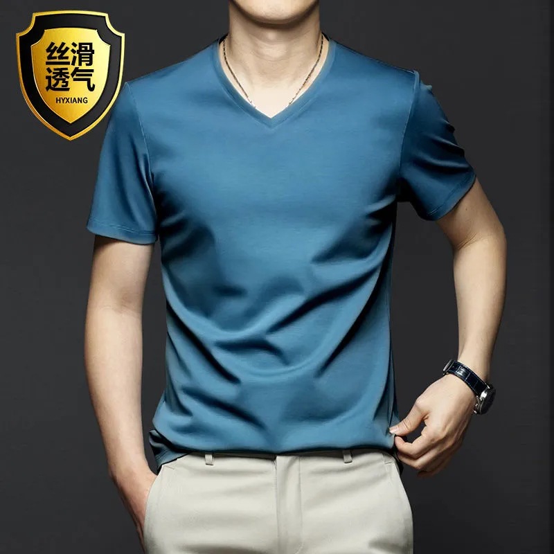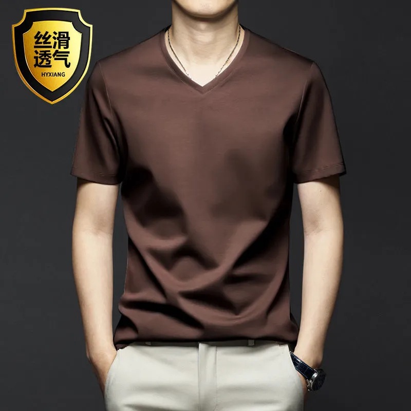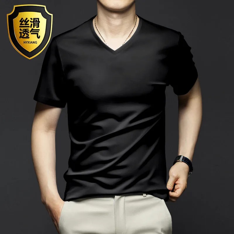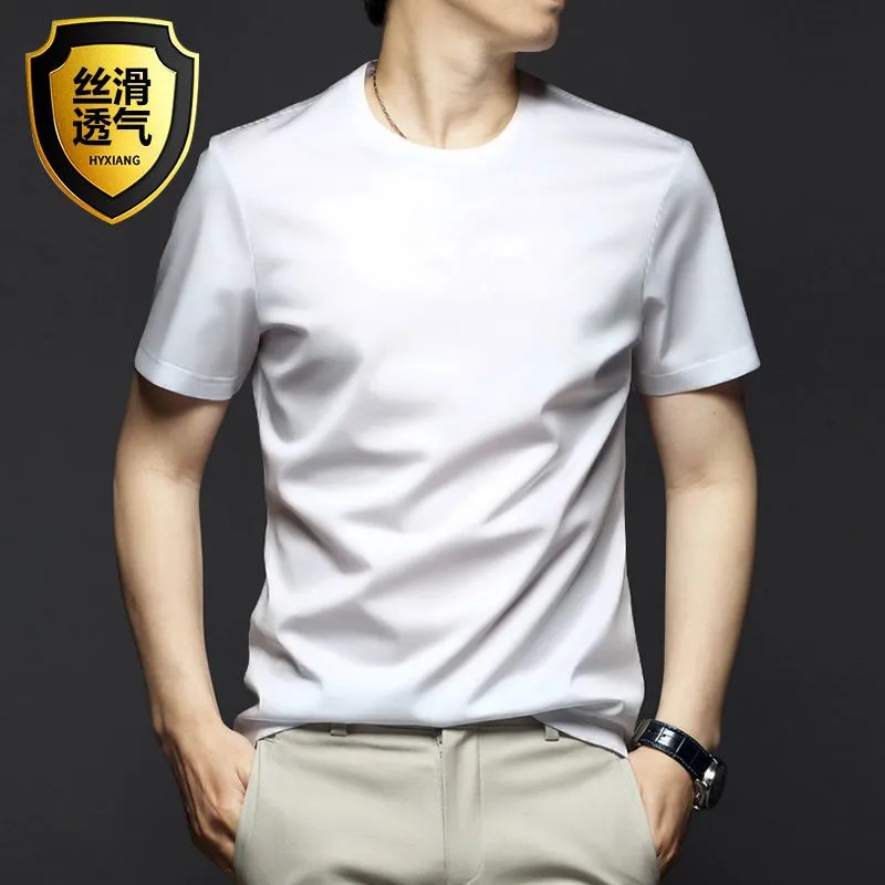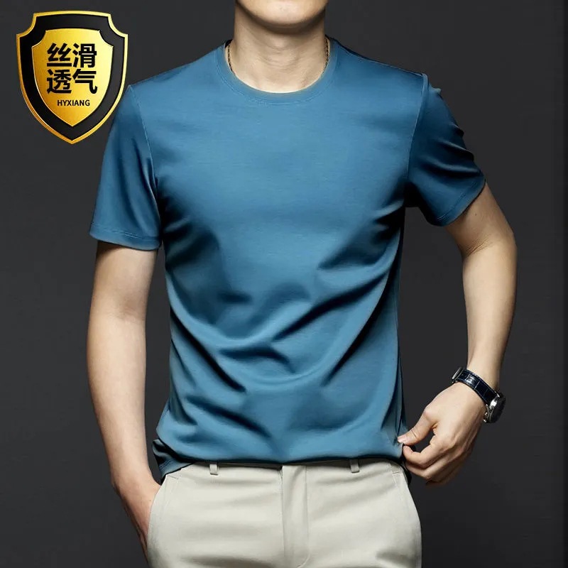 여름 시원한 모달 반팔 티셔츠 남성용 트렌디 한 솔리드 컬러 내부 라운드 넥 바닥 셔츠 얇은 통기성 탑