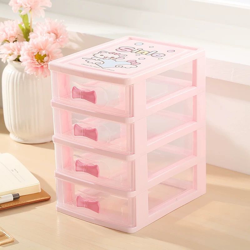 풀타입 수납함 탁상용 서랍형 다층 플라스틱 투명 귀여운 소형 수납장 문구 용품 보관함