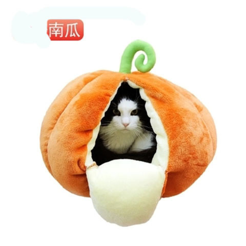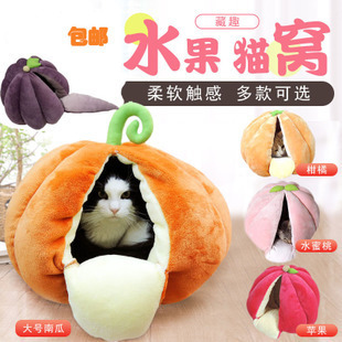 애완 동물 둥지 귀여운 과일 호박 둥지 고양이 둥지 개 둥지 겨울 따뜻한 반 폐쇄 고양이 집 몽골 고양이 둥지스토어 가기