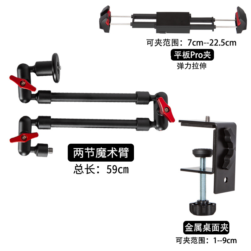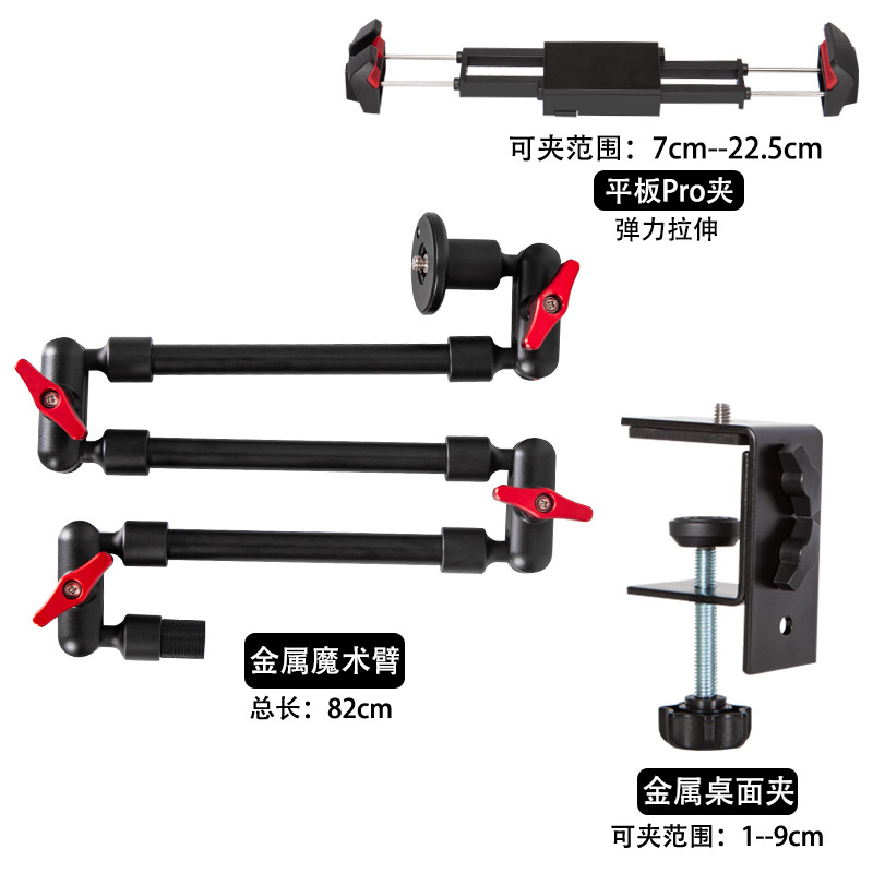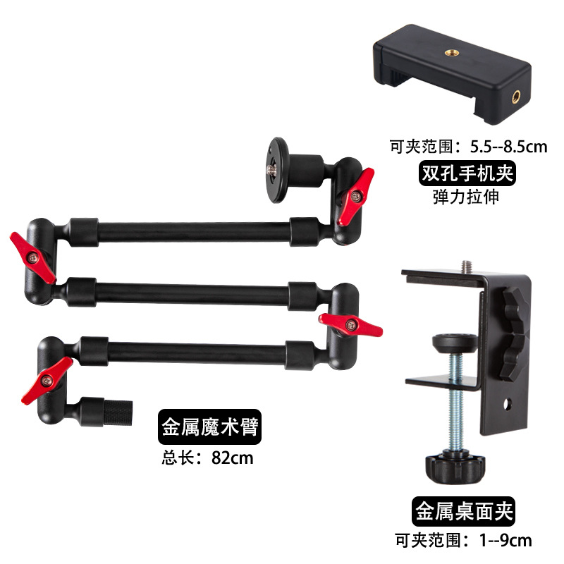 • 메탈 데스크탑 클립 + 매직 암 3 개 + 더블 홀 휴대폰 클립