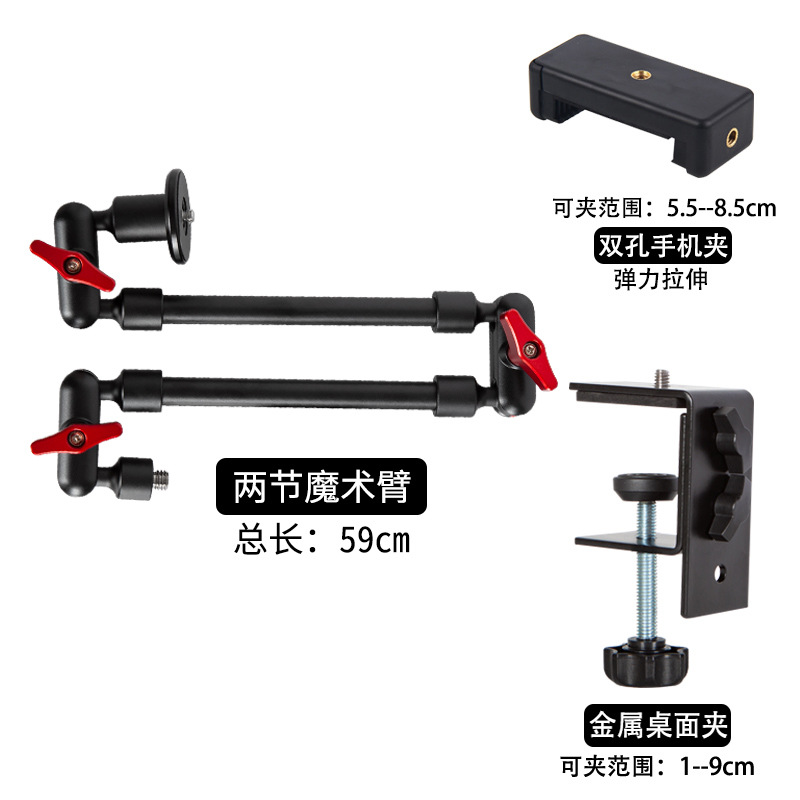 • 메탈 데스크탑 클립 + 매직 암 2 개 + 더블 홀 휴대폰 클립
