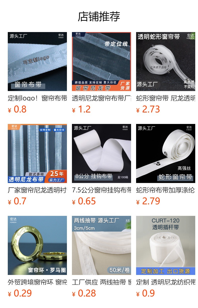 공장에서 커튼용 천공 원단, 직조 테이프, 로마 링, 두꺼운 섬유 테이프, 부자재 및 액세서리를 재고 보유하고 있으며, 한국으로 직송합니다.스토어 가기