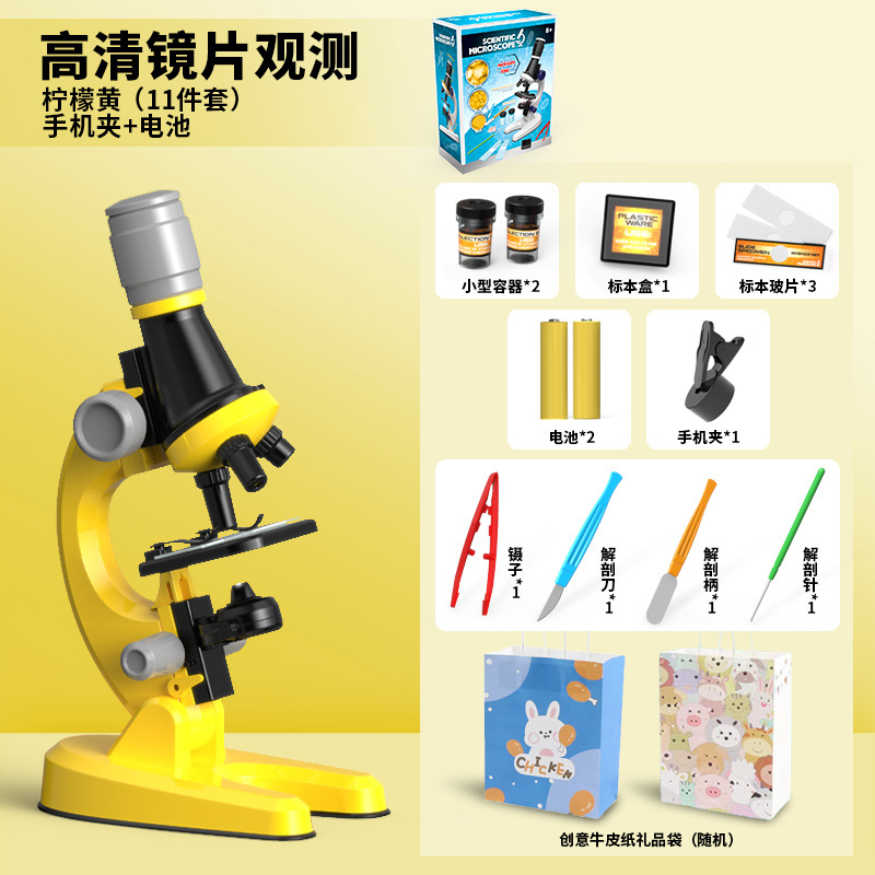 어린이 현미경 HD 1200 배 생물학 중학생 과학 실험 세트 장난감의 세대