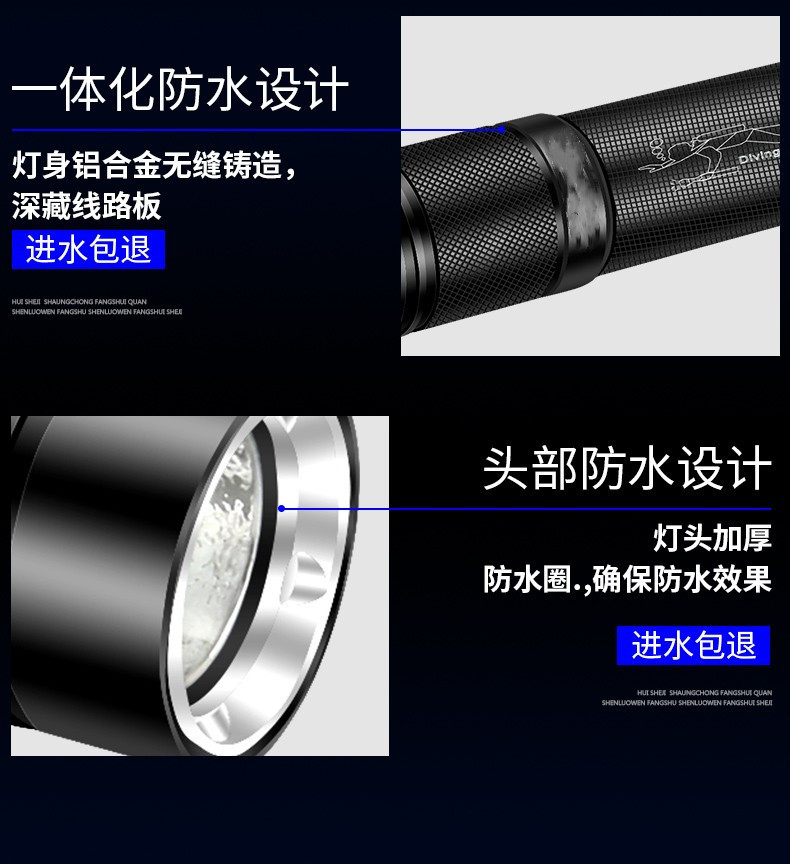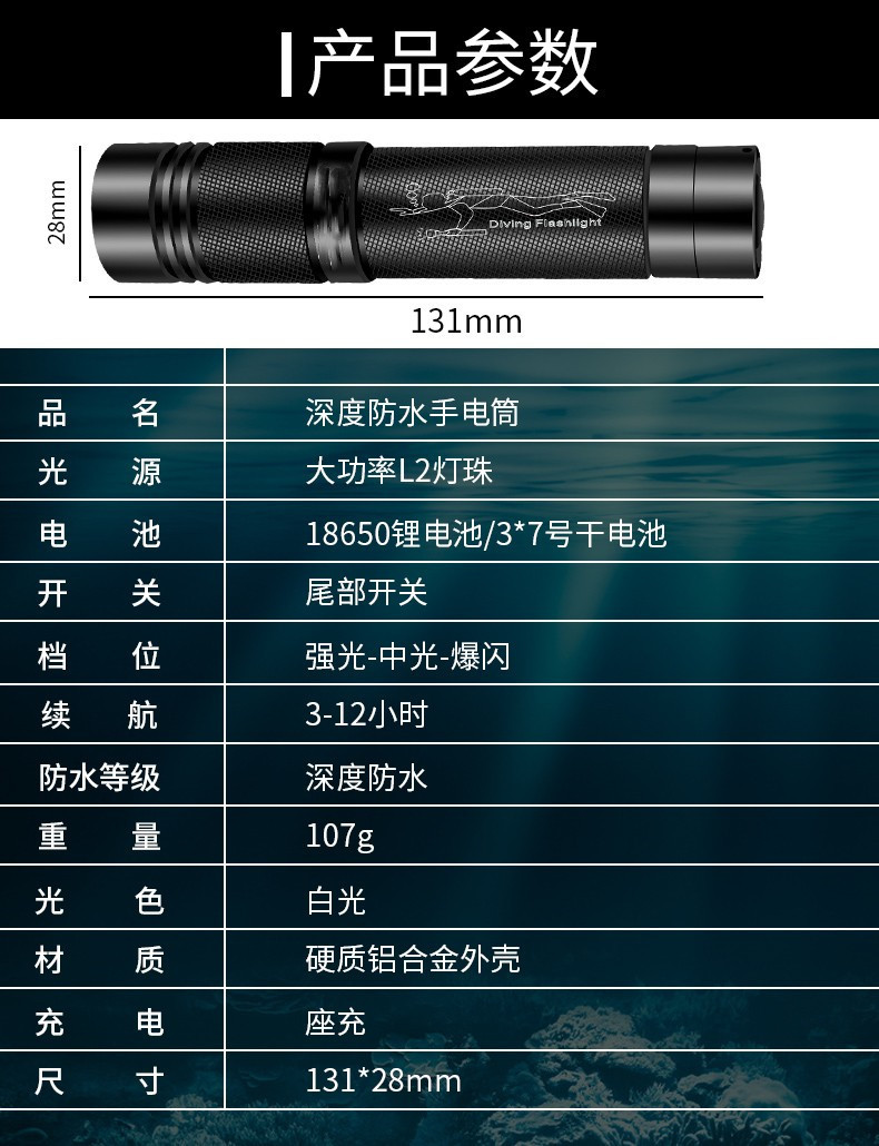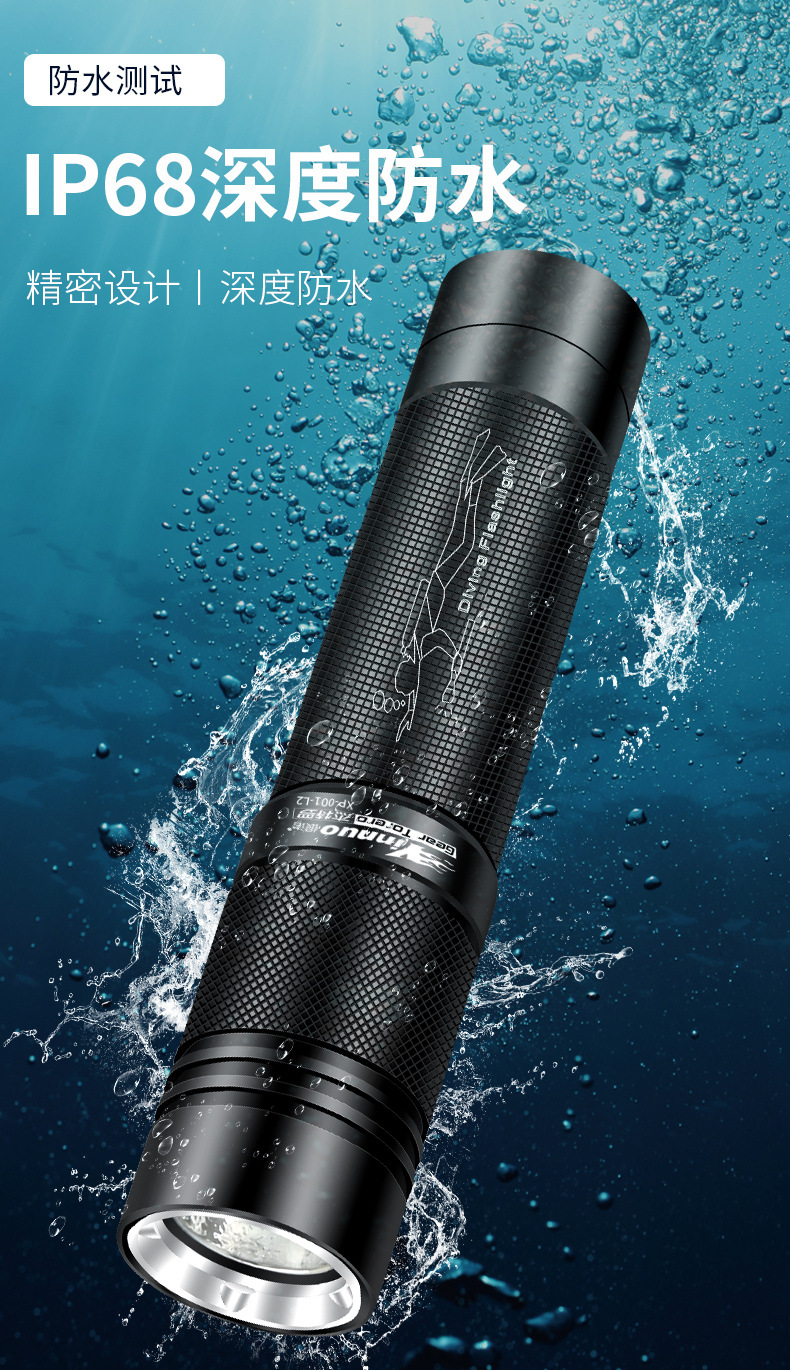 도매 방수 손전등 강한 빛 슈퍼 밝은 전문 다이빙 손전등 야외 바다 운전 충전식 led 다이빙 손전등스토어 가기